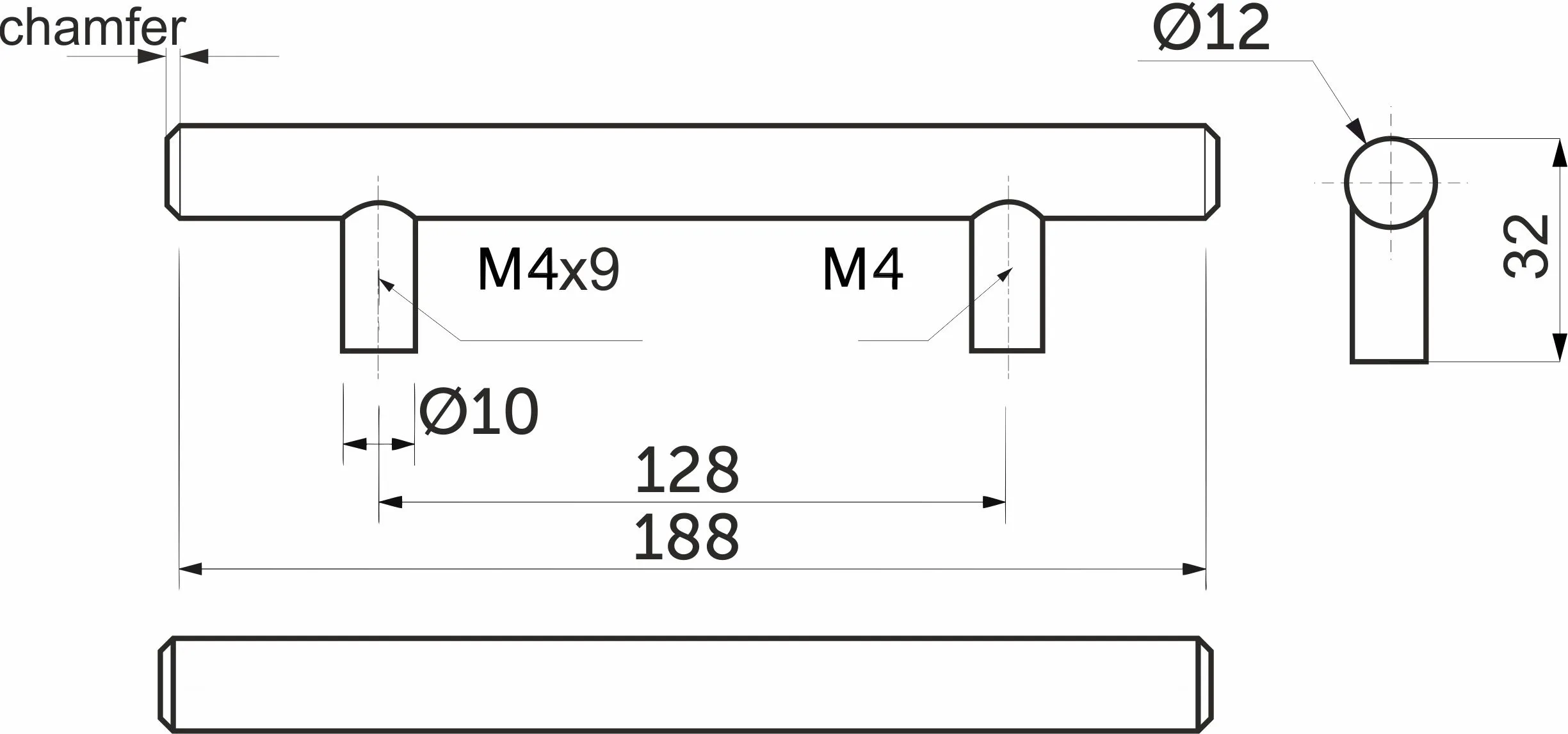 Ручка меб. релинговая 128/188 полая сталь черный матовый, AKS