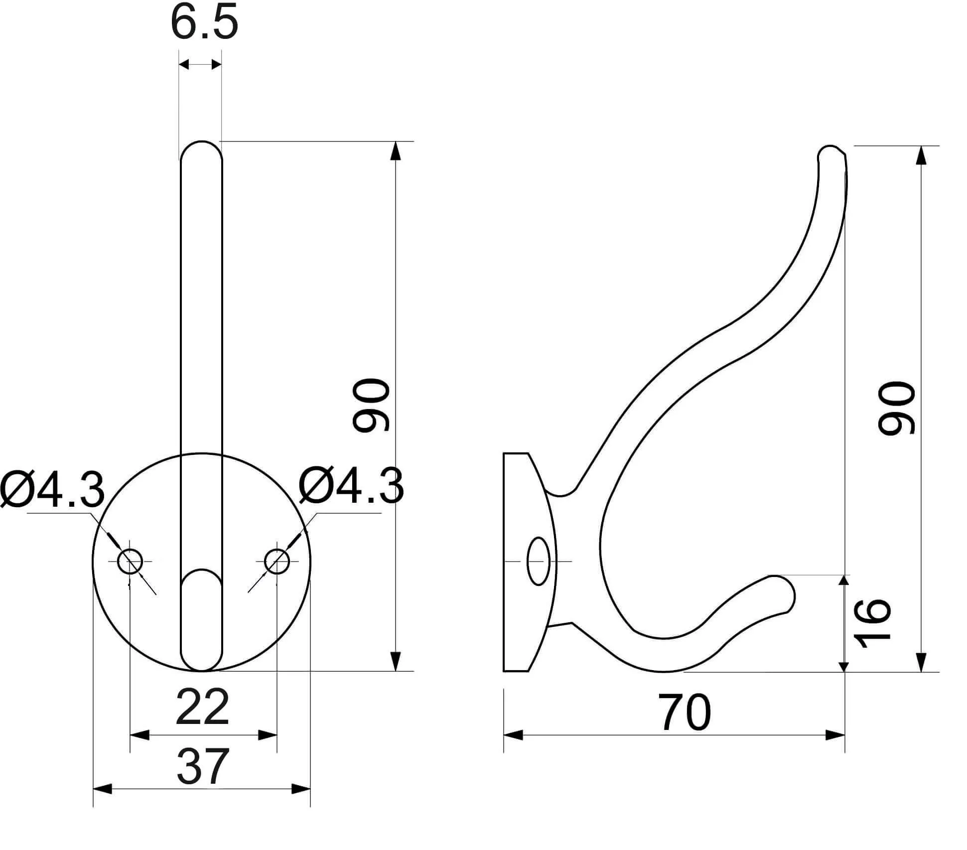Крючок двухрожковый классический