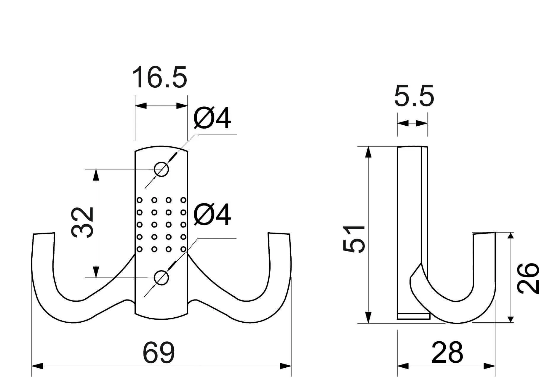 Крючок двухрожковый классический