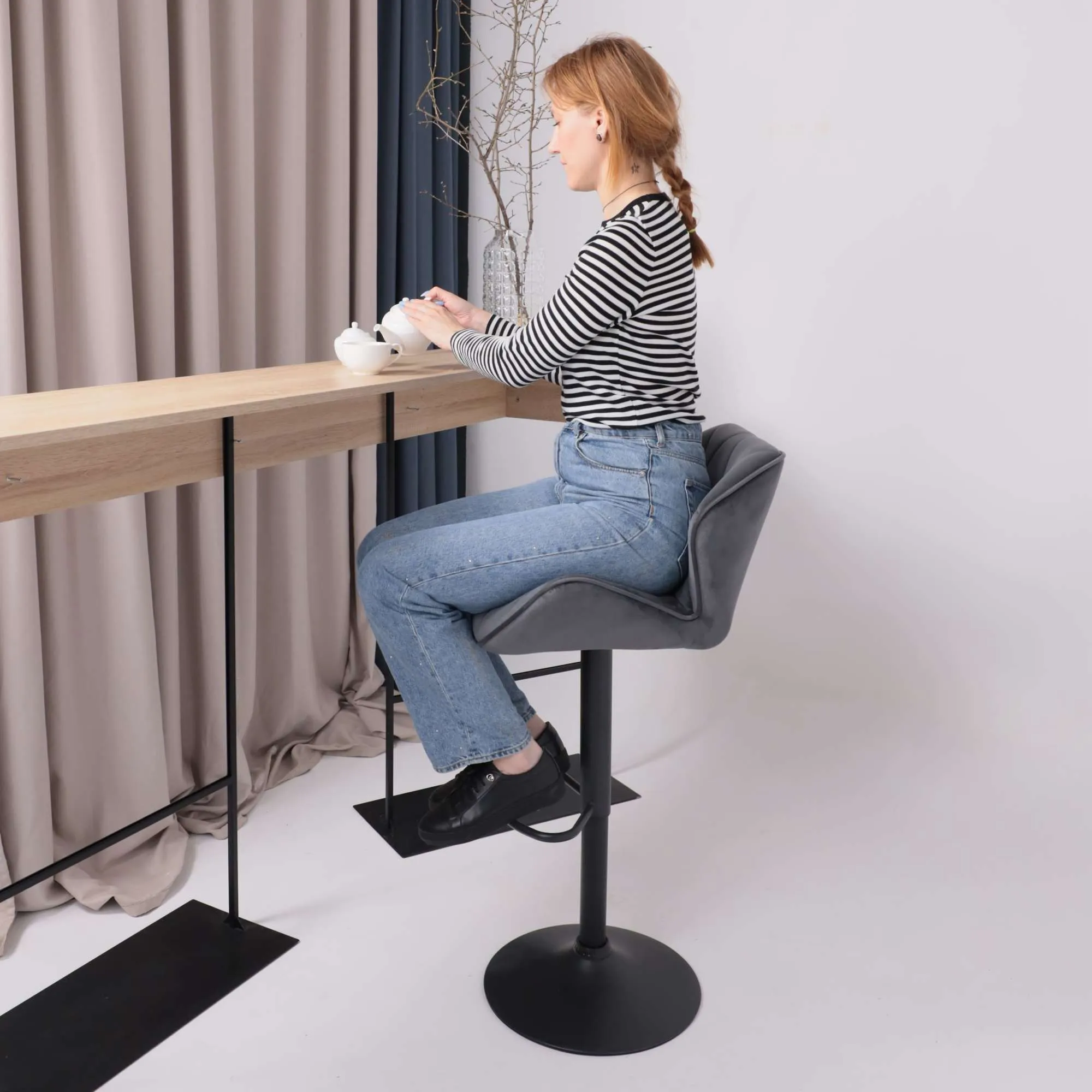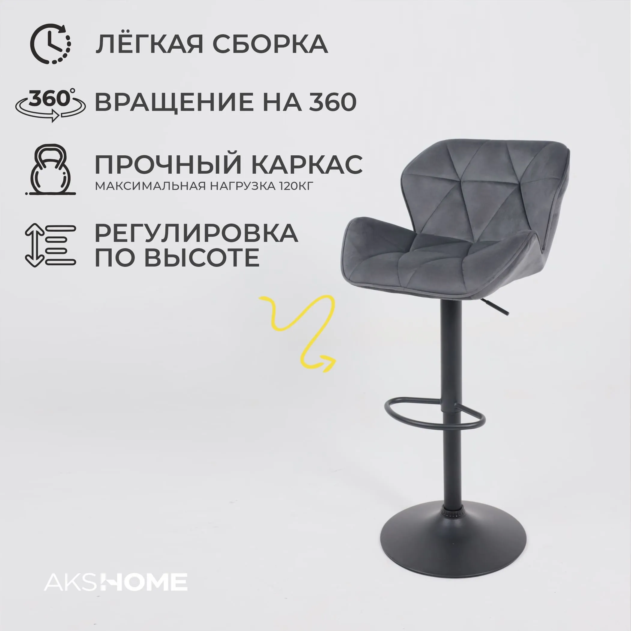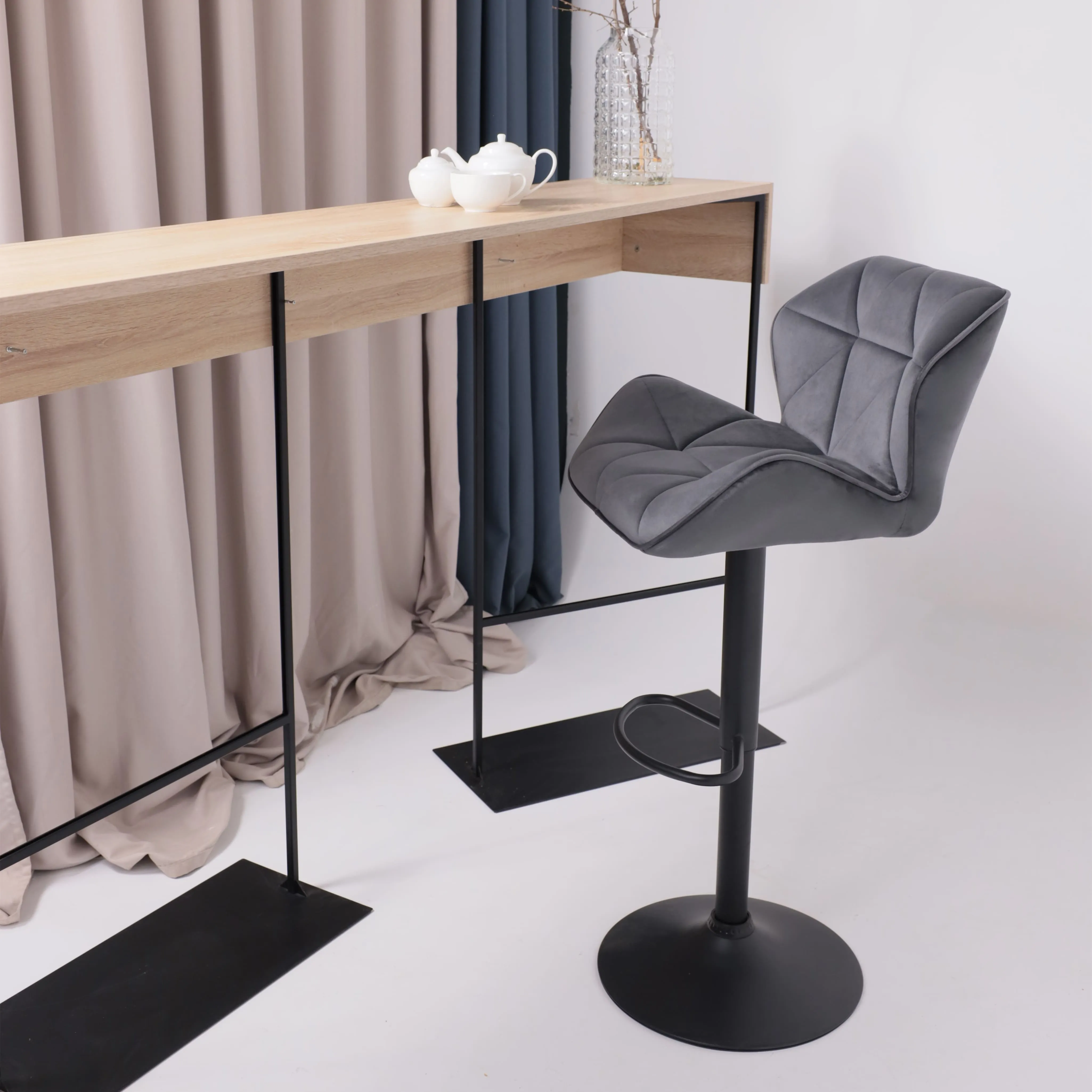 Стул барный BOB, темно-серый велюр HCJ-40/черный