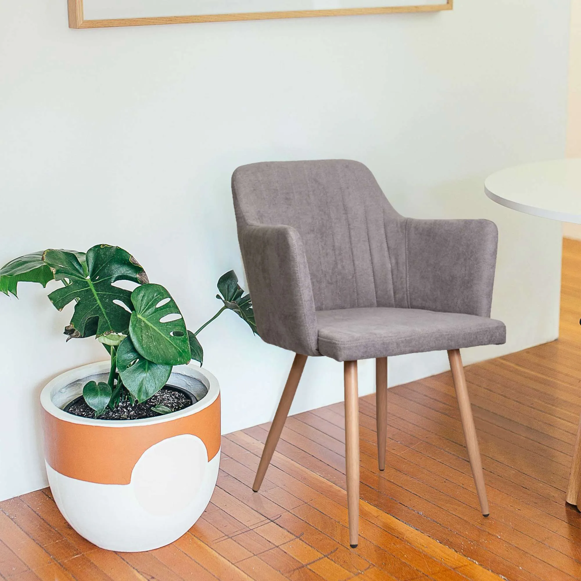 Мягкий стул с округлой спинкой анатомической формы и удобными подлокотниками подарит комфорт и уют. В качестве обивки используется ткань - прочный износостойкий и приятный на ощупь материал.