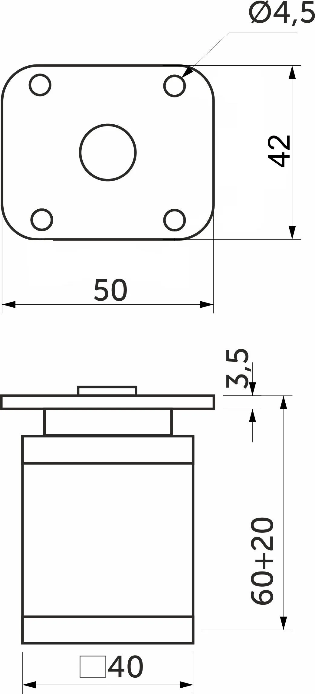 Высота 60мм+20мм.
