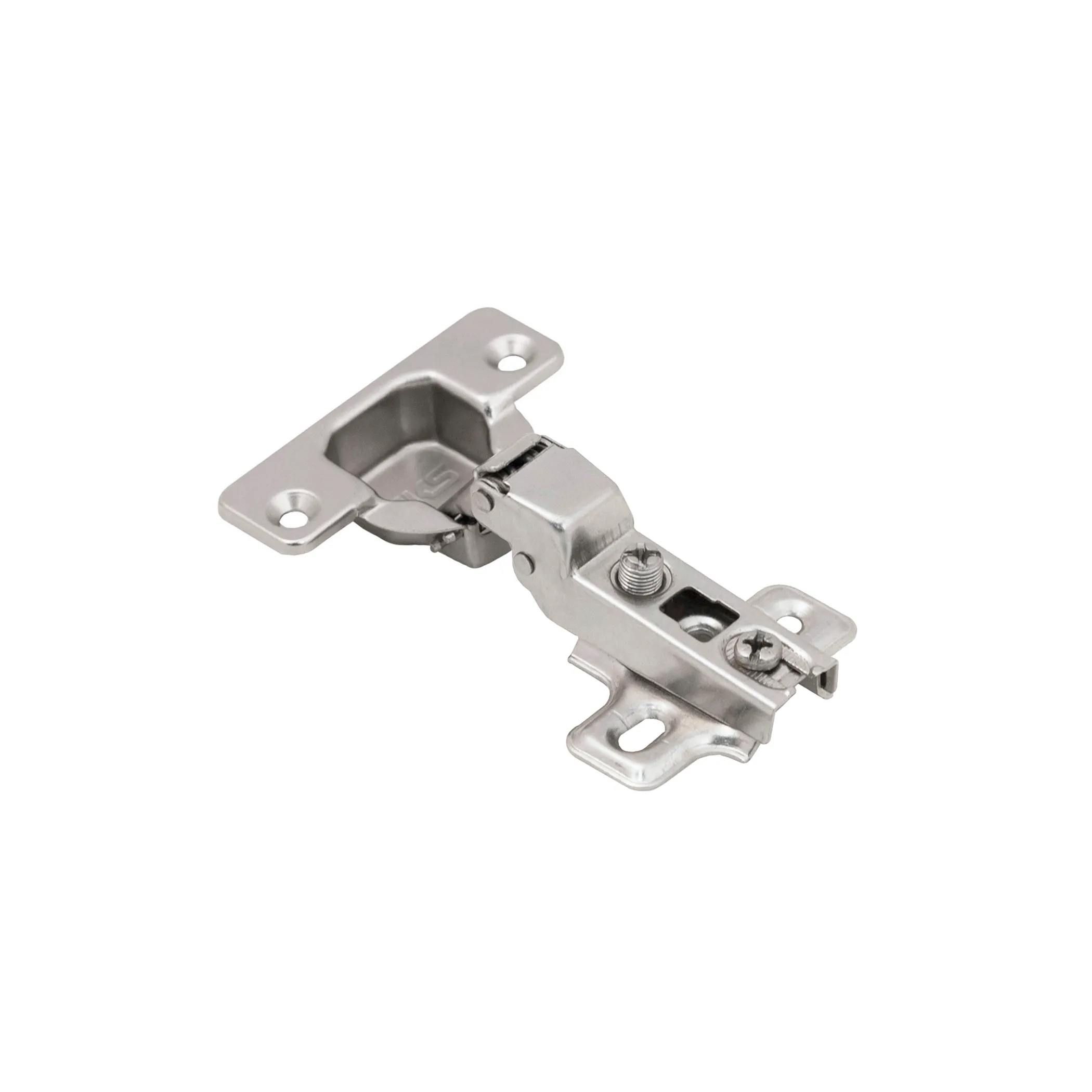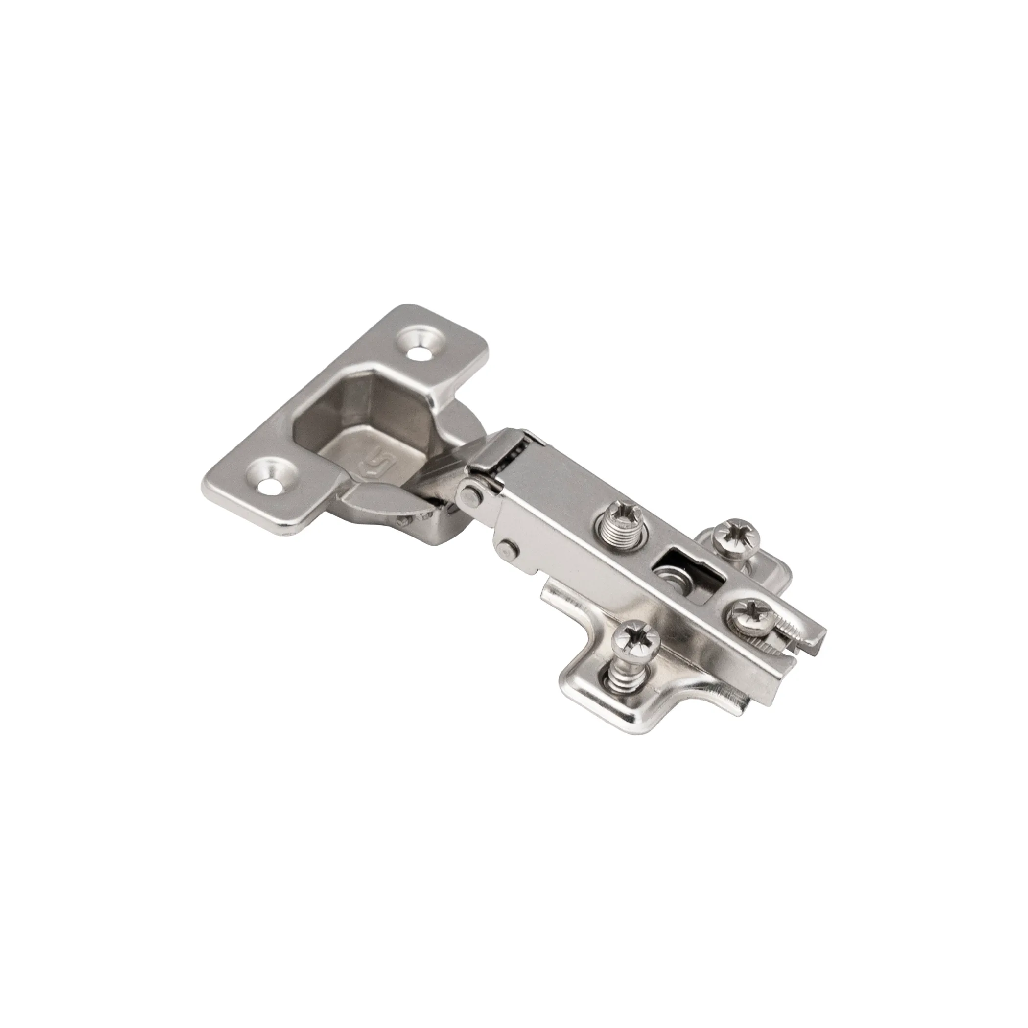 Для простоты монтажа и регулировки данная петля оснащена механизмом надвижного монтажа slide-on и регулировочным винтом с резьбой 10 мм. Регулировка по глубине -винтовая.