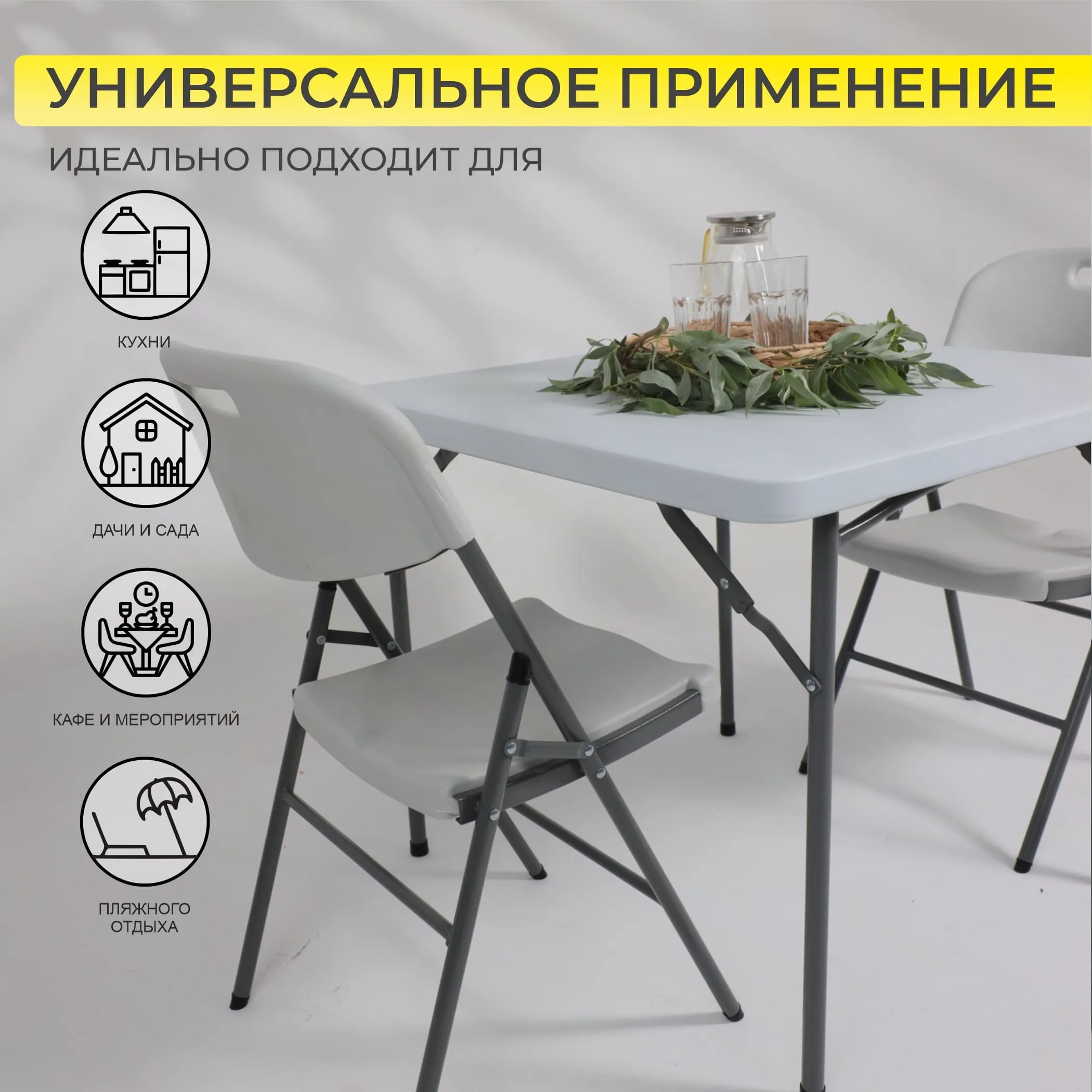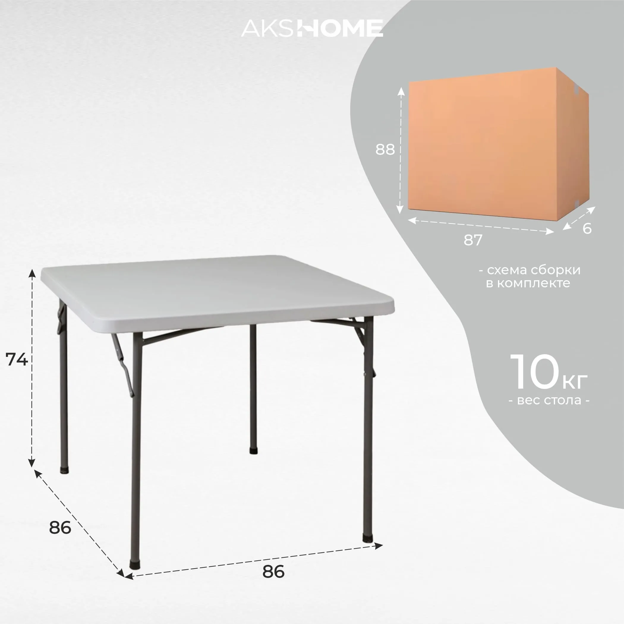 Стол складной 86*86*74, белый