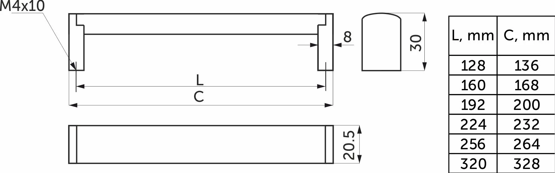 | Длина (L, мм) | 192 |