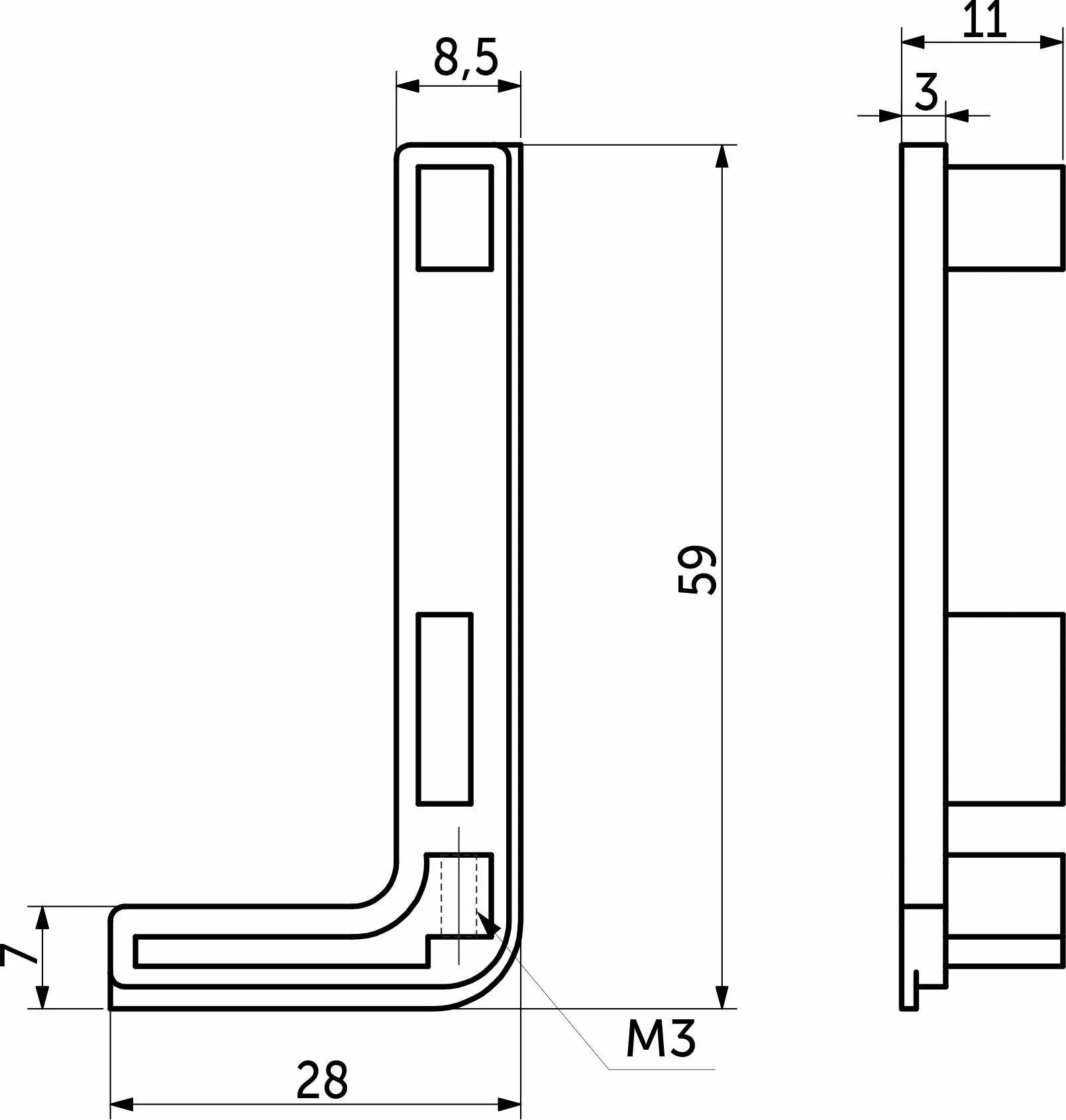 Комплект заглушек металлич. к профилю Gola, L-образных (левая+правая) черный 3 AKS