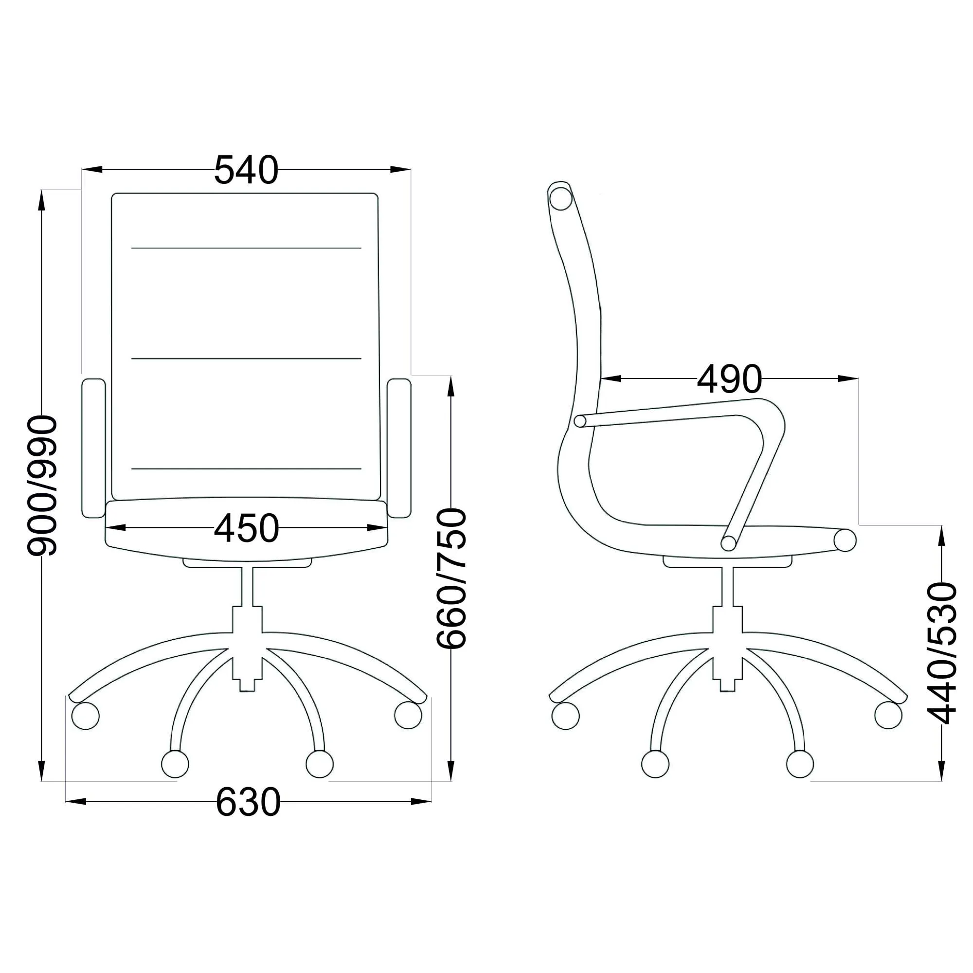 | Ширина с подлокотниками (мм) | 540 |
