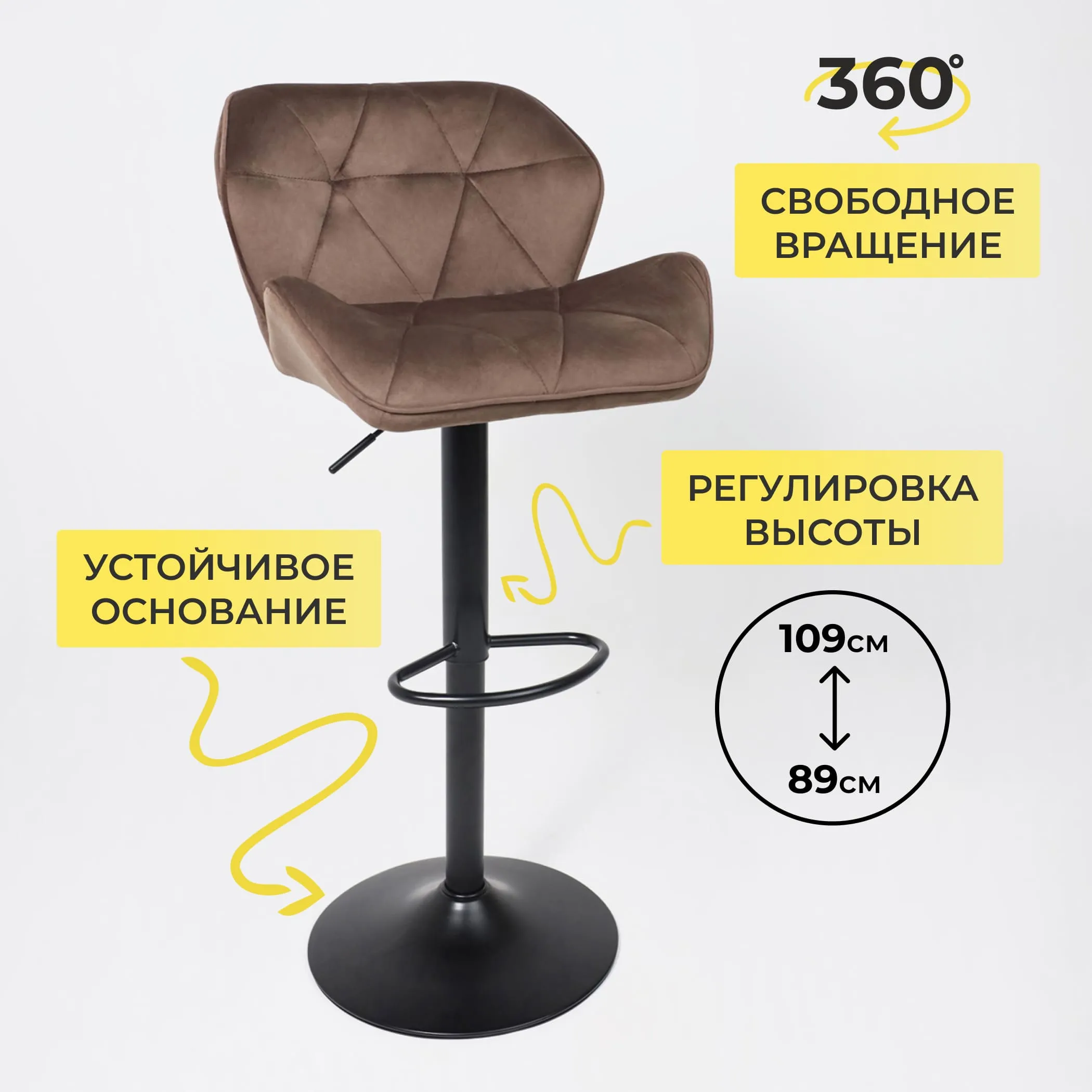 Стул барный MIA, коричневый велюр HLR49/черный