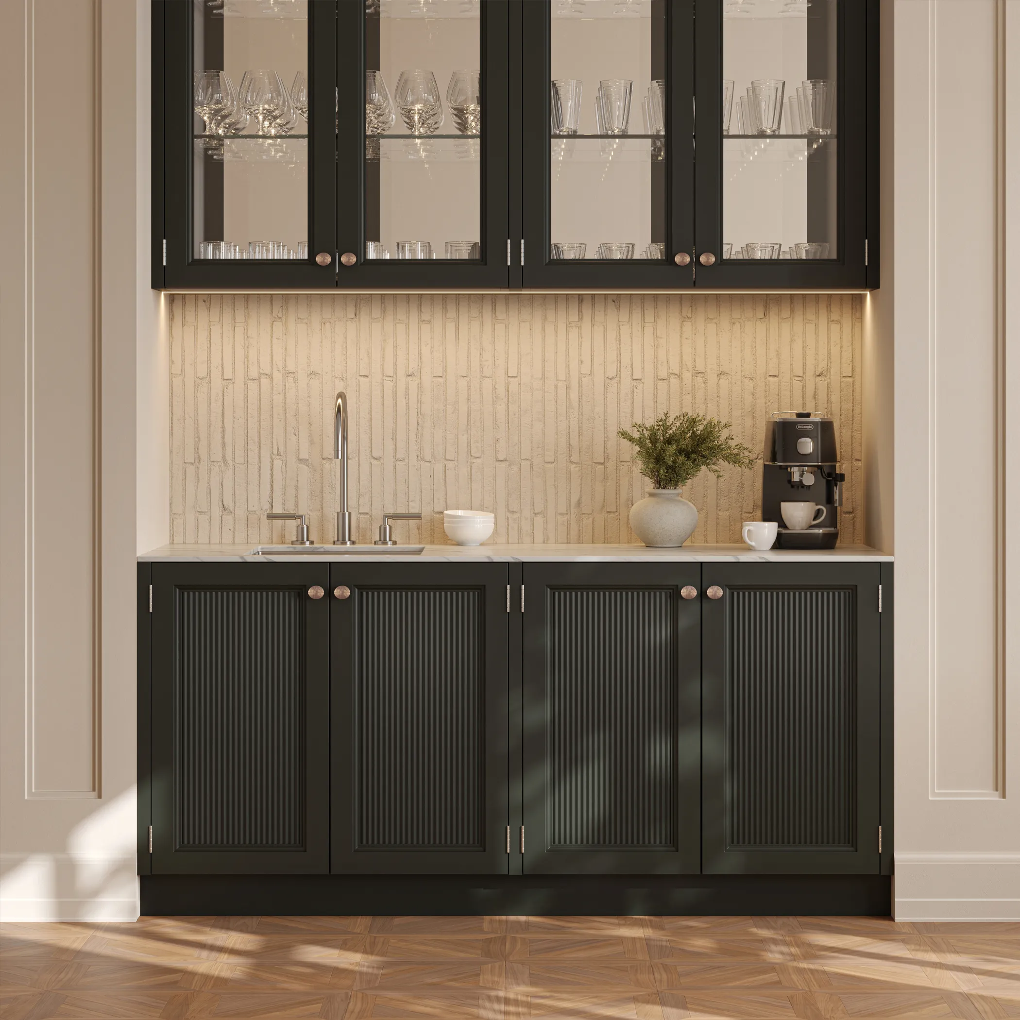 Дизайн ручки при детальном рассмотрении словно олицетворяет лучи света, собранные воедино, а благородные оттенки античной латуни и серебра придают ей дополнительный флёр.