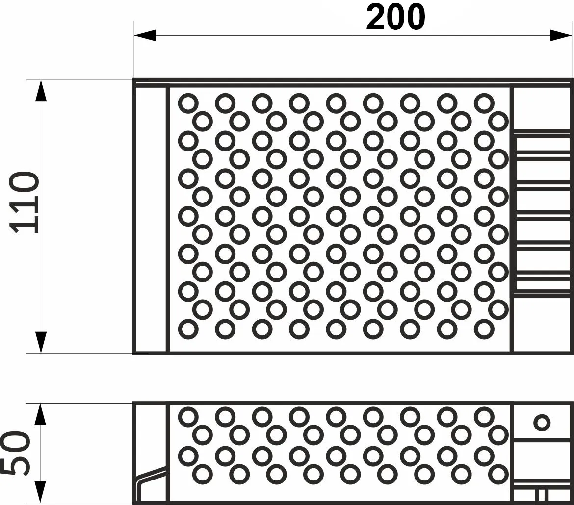 Размеры 200х110х50 мм, Вх.напряж. 110-220V AC, вых напряж. 12V DC, мощность 250Вт, сила тока 20.8A, степень защиты IP20.