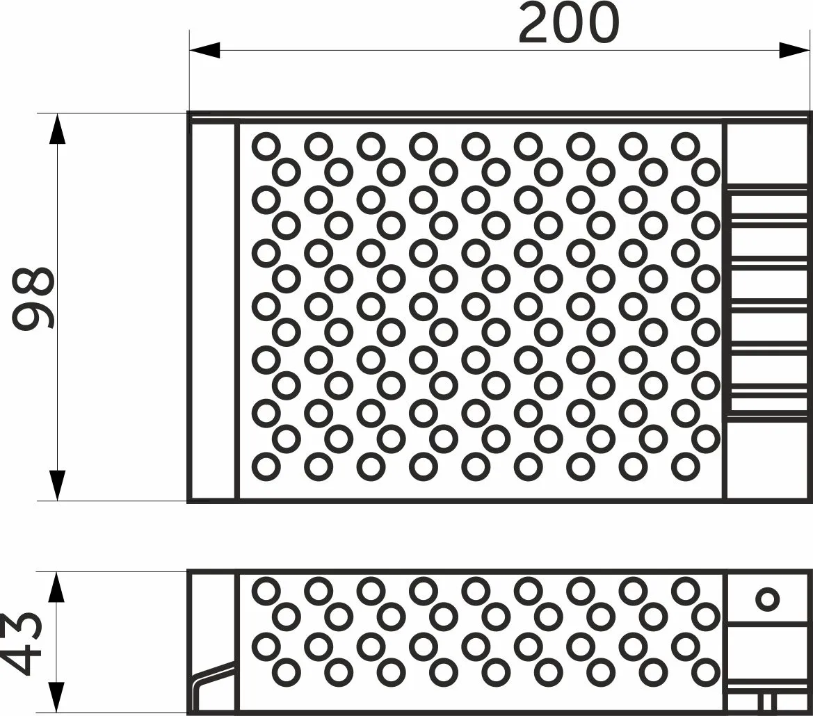 Размеры 200х98х43 мм, Вх.напряж. 110-220V AC, вых напряж. 12V DC, мощность 200Вт, сила тока 12.5A, степень защиты IP20.
