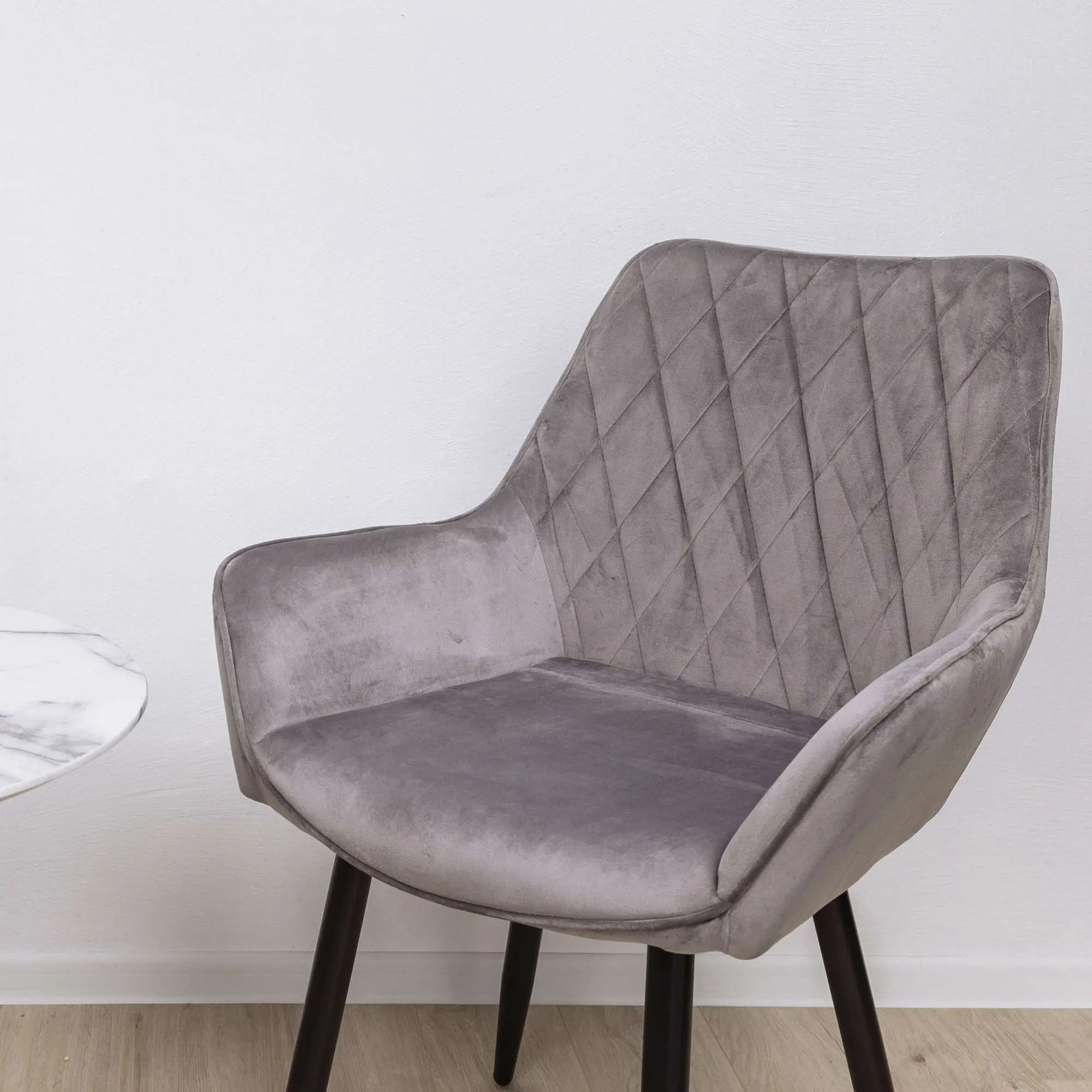 Яркое кресло с широким сиденьем и удобной эргономичной спинкой, декорированной строчкой в виде ромбов. Высокопрочная обивка из велюра. Металлический каркас выдерживает нагрузку до 120 кг.
