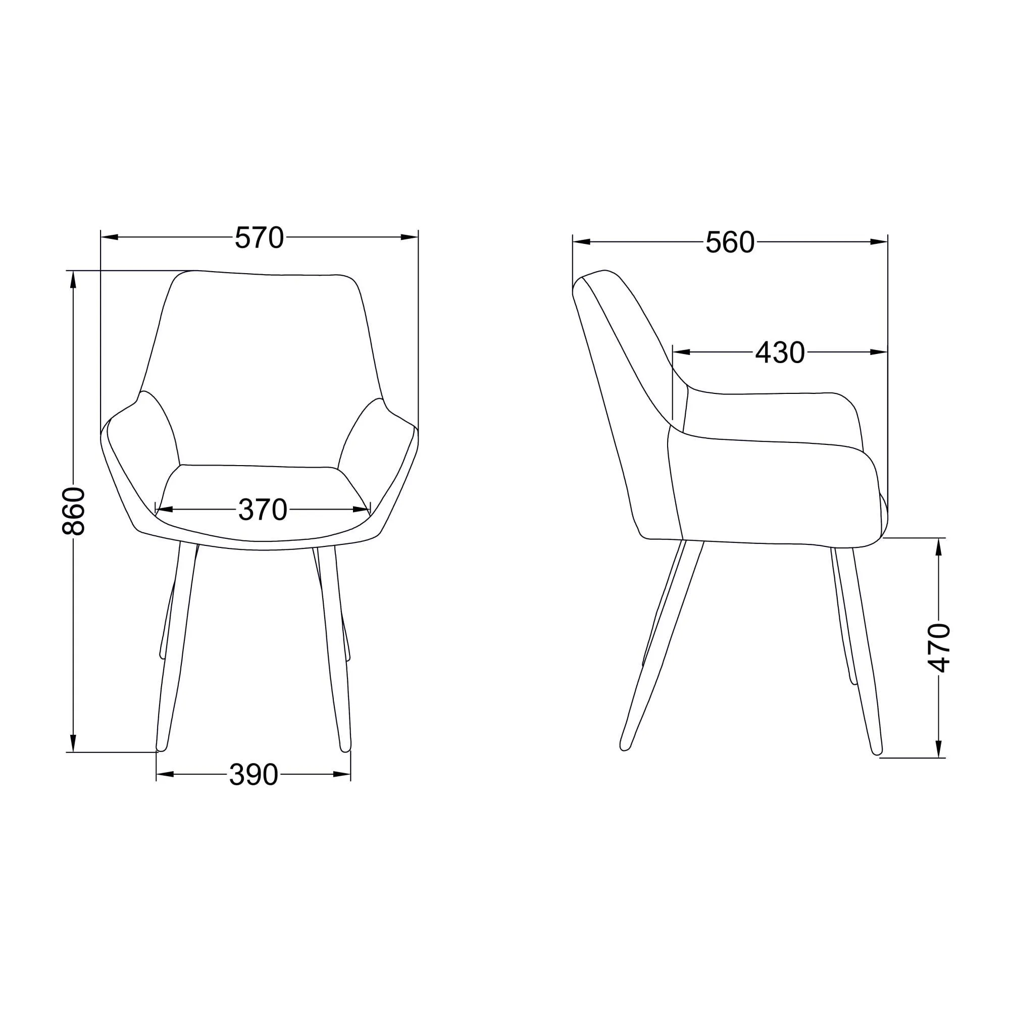 | Ширина с подлокотниками (мм) | 570 |