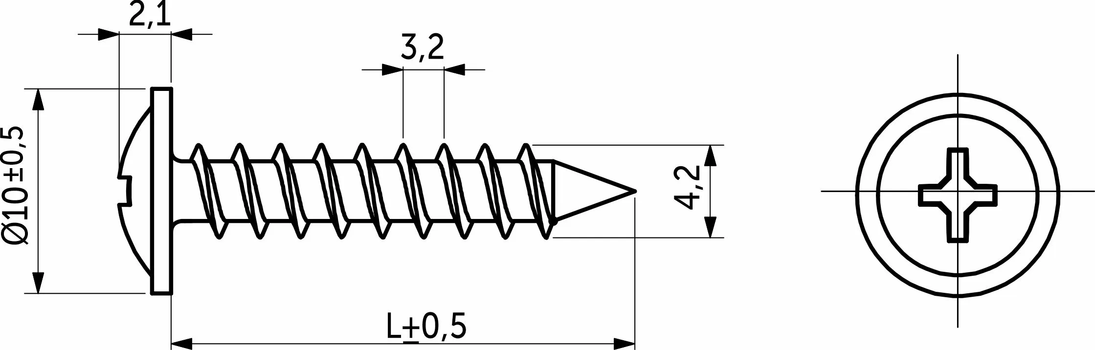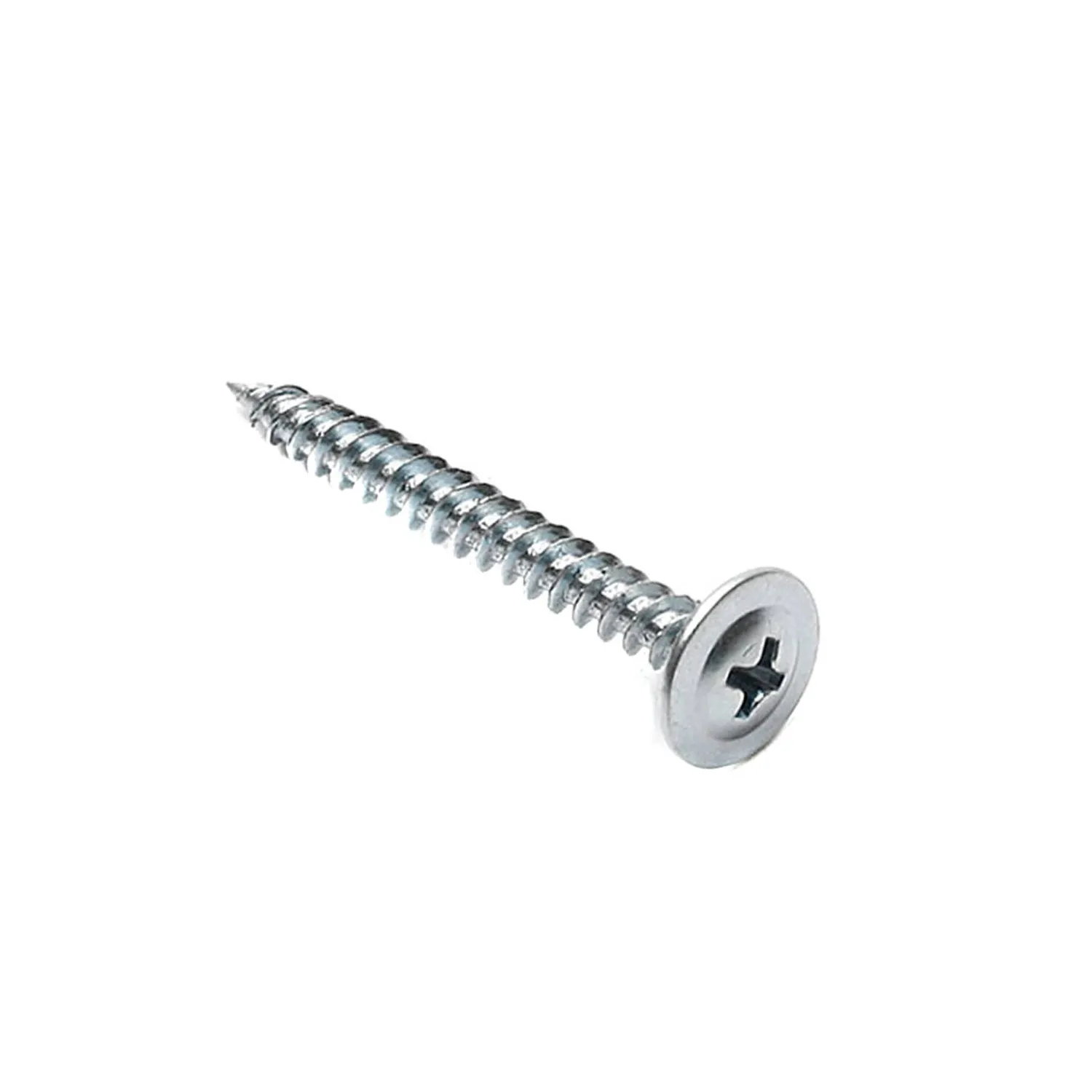 Головка имеет полусферическую форму с пресс-шайбой, шлиц крестообразный PH2, частая резьба, острый наконечник. Материал изготовления – сталь, а покрытие - белый цинк.