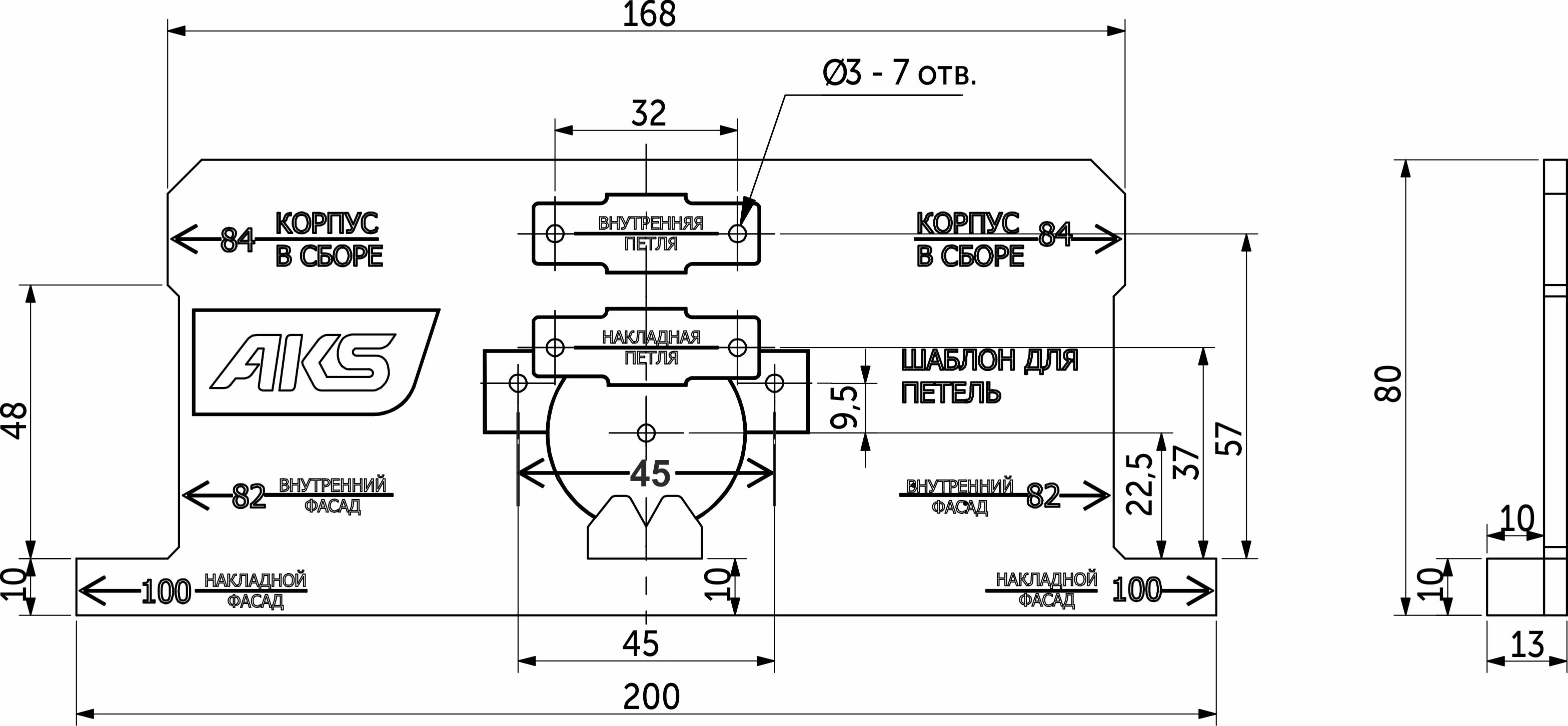 Шаблон для разметки под мебельные петли (присадка 45мм) AKS