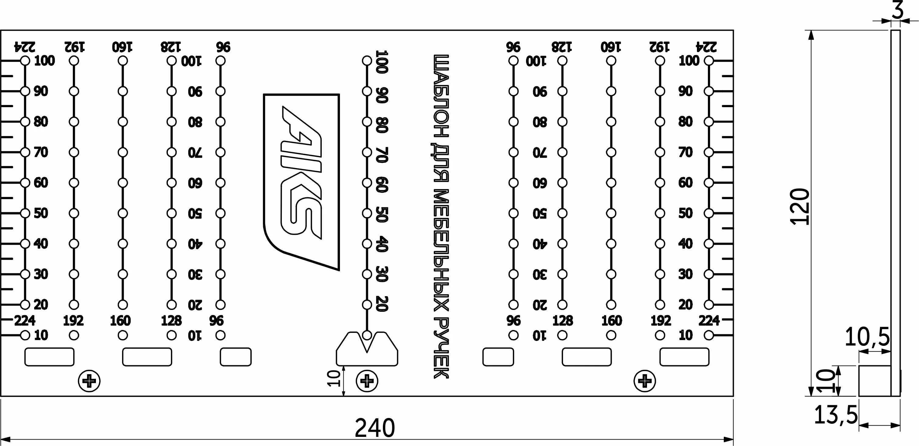 Шаблон для разметки и присадки под эксцентрики AKS