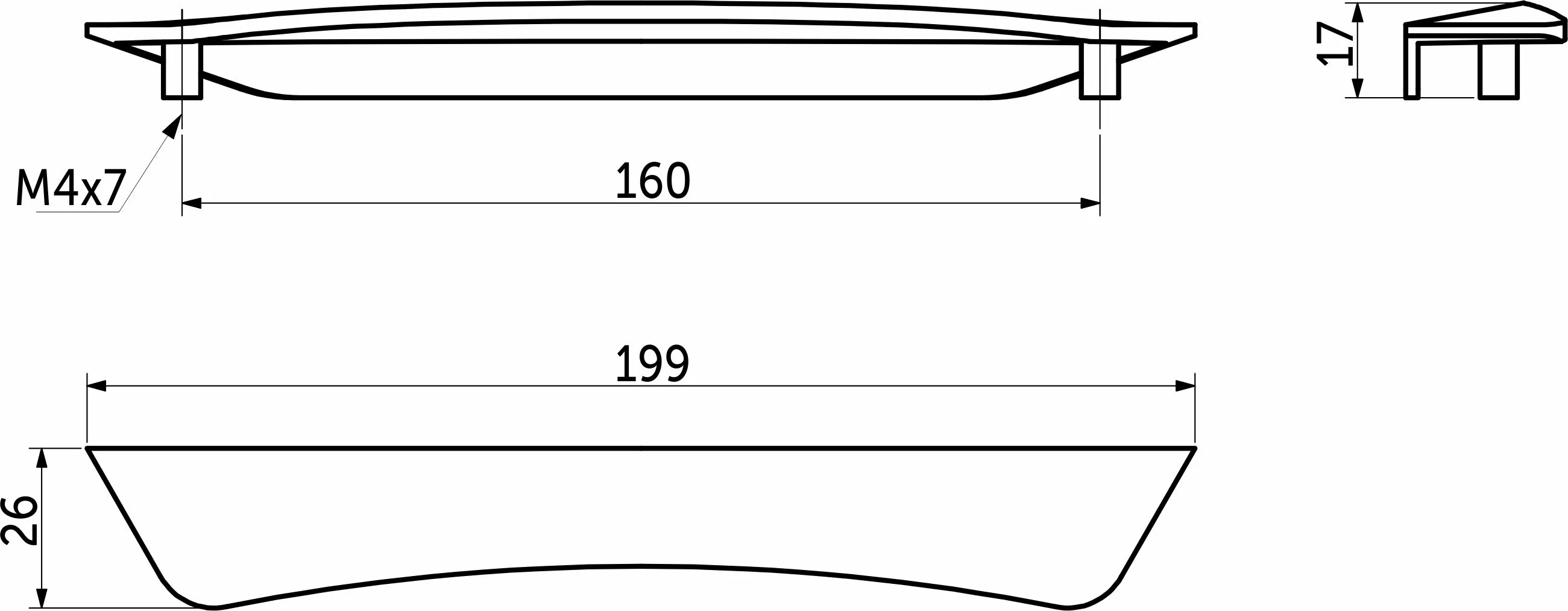 Ручка меб. накладная алюм. MONBLAN 160/200 черный матовый, AKS