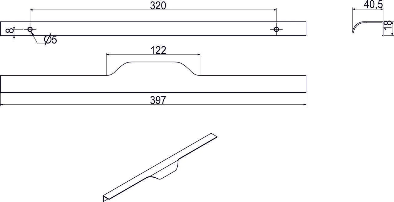 Ручка меб. накладная алюм. LINEA 320/397 алюминий, AKS
