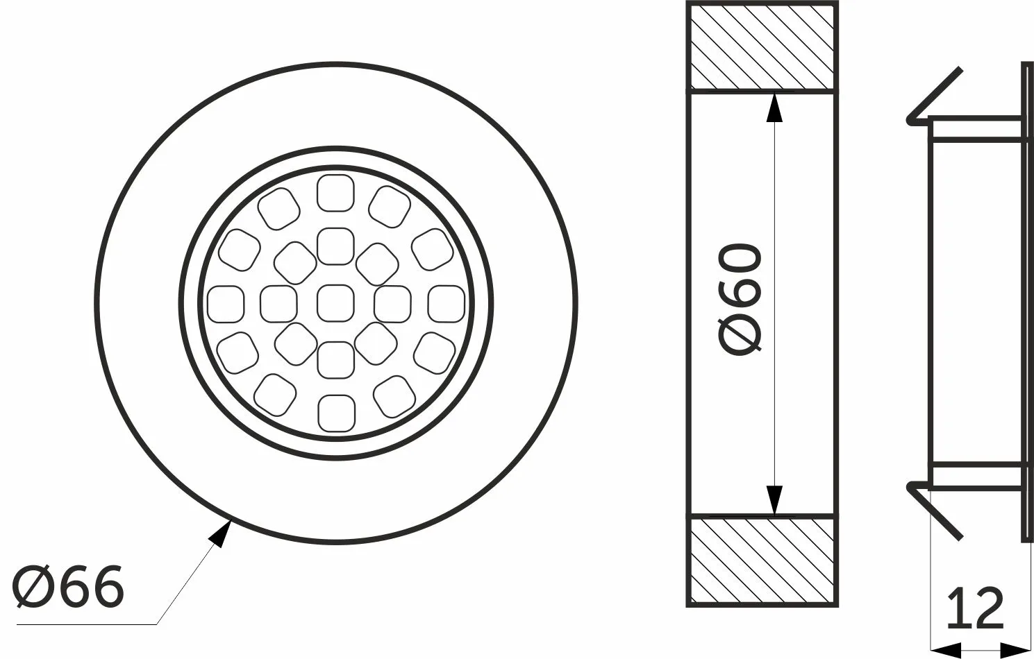 Светильник светодиодный SUN, врезной, 2W, 12V, круглый, белый, 6000К, AKS