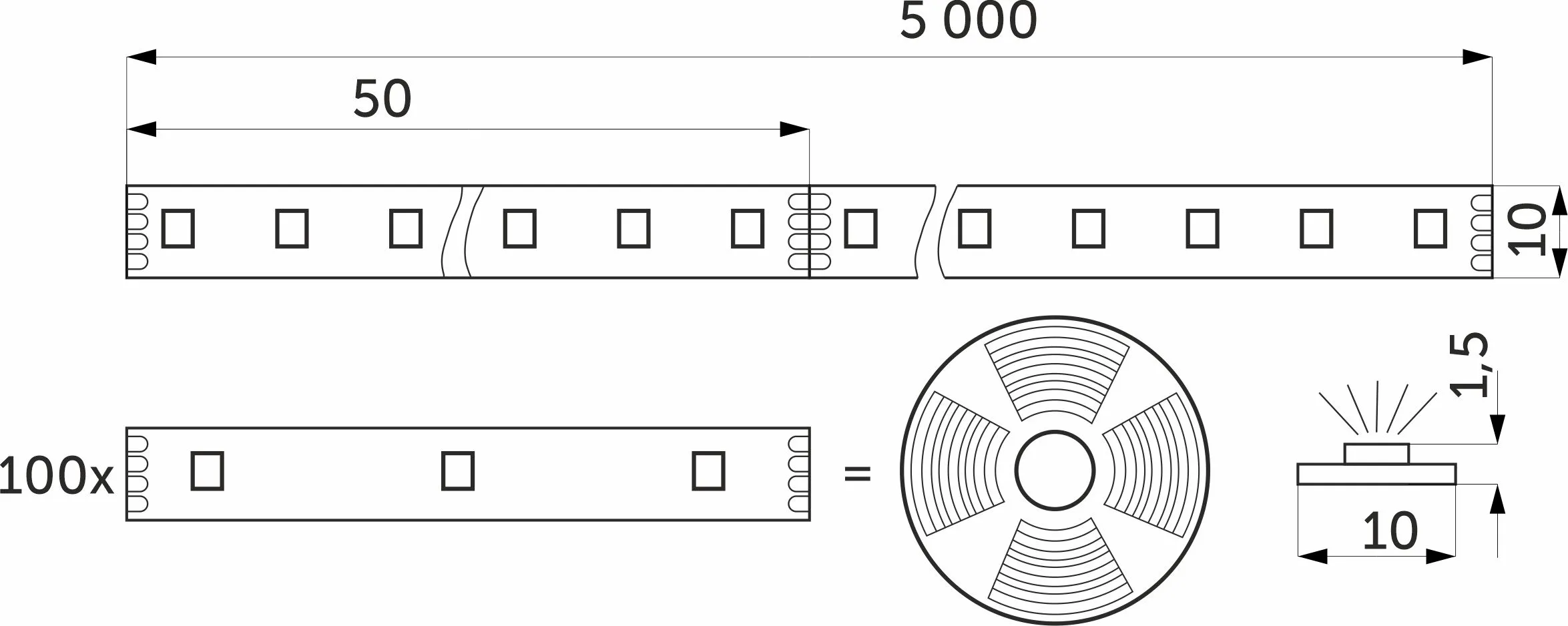 Ширина 10 мм, длина 5 м.
