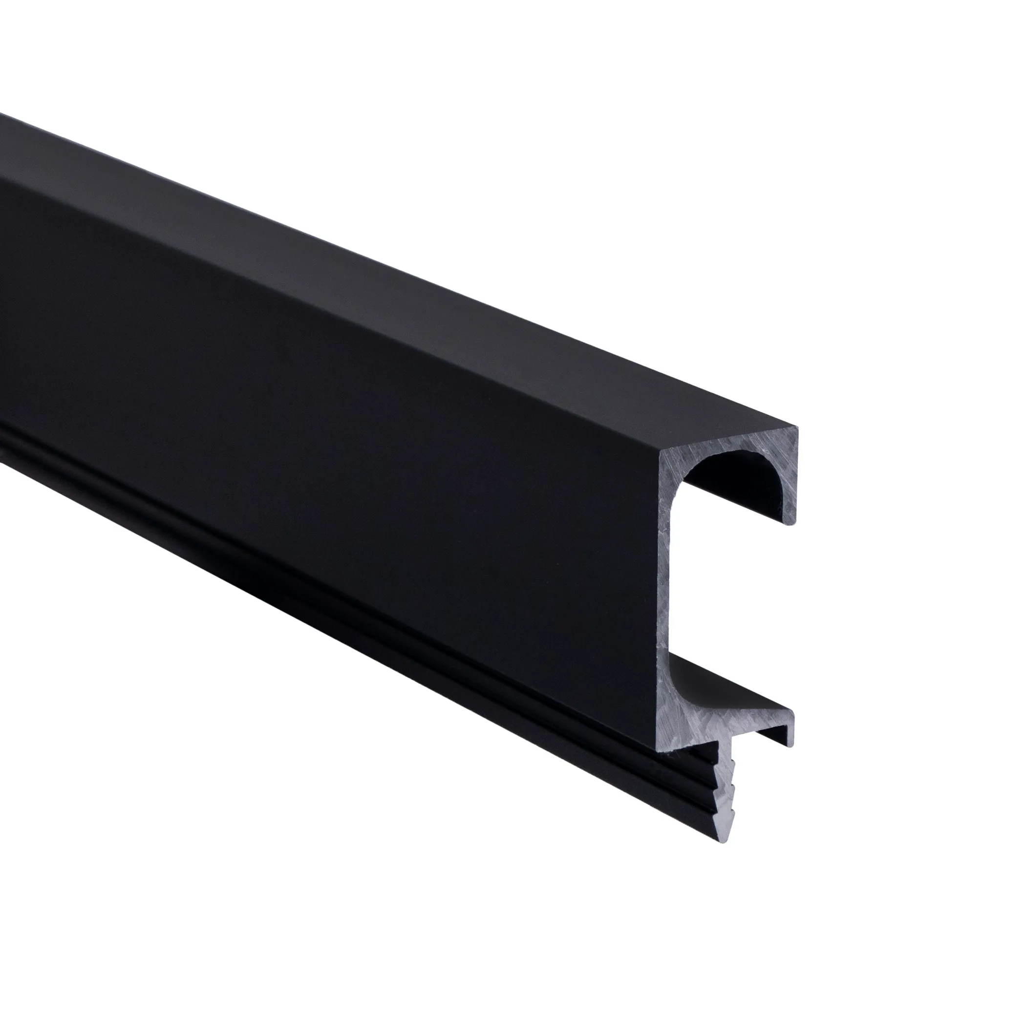 Алюминиевая ручка-профиль, врезная, С-образная, под толщину ДСП 18мм, общая длина 4м (полезная длина профиля 3,95м), цвет черный матовый, анодировка.