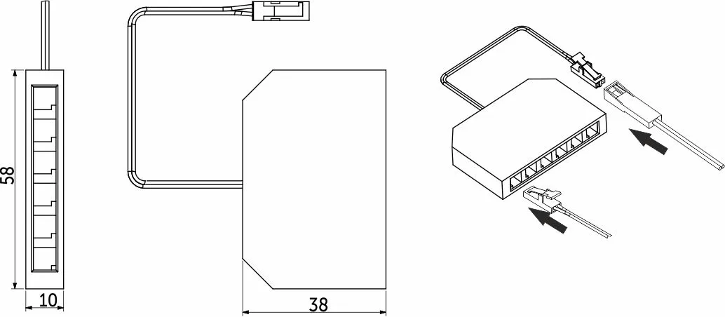 Для соединения нескольких светильников с миниконнекторами "папа" в трансформатор с миниконнектором "мама"