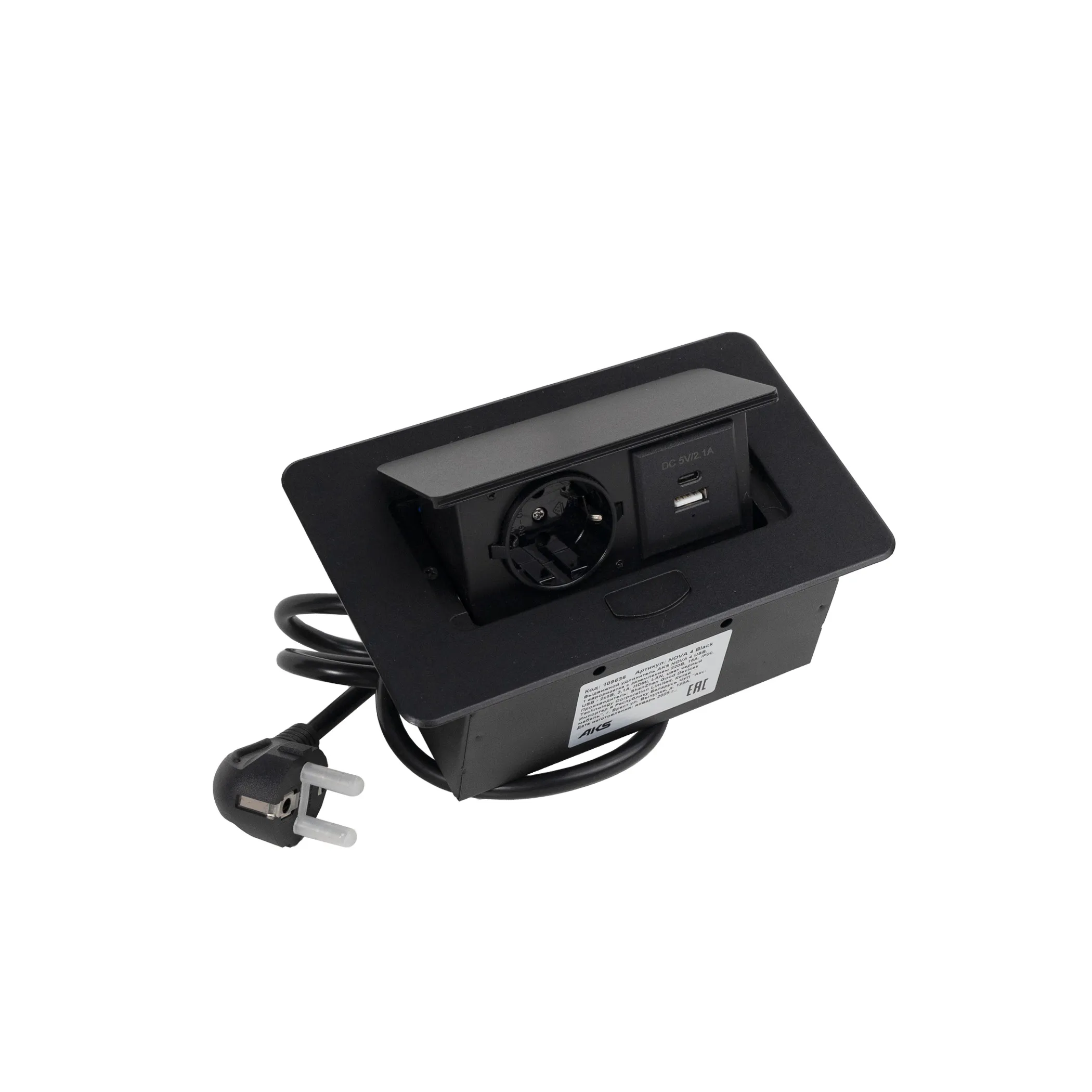 Выдвижной удлинитель Hollander, 2 розетки, 2xUSB, HDMI, LAN, черный AKS
