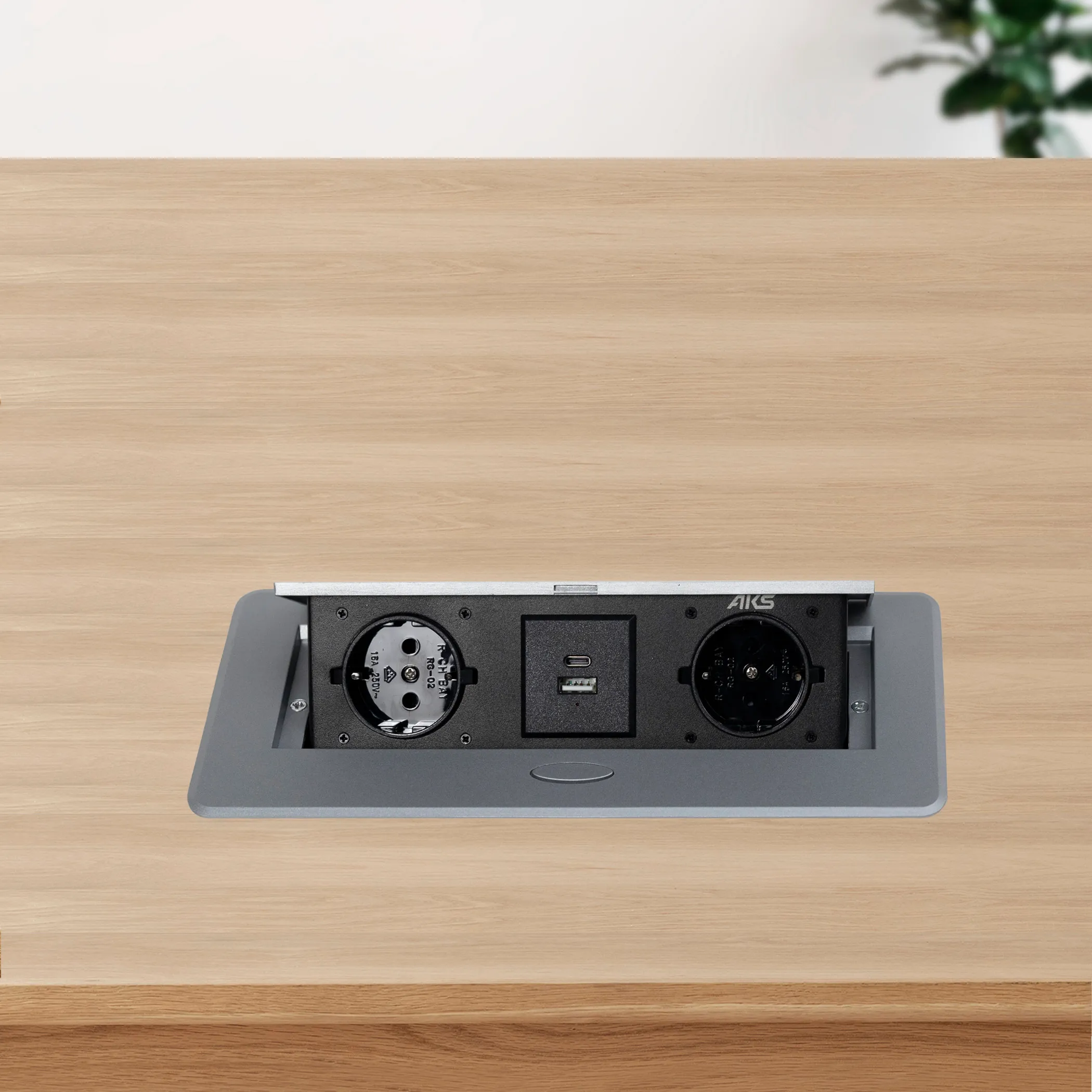 2 евророзетки с заземлением 220В (Schuko), USB A + USB C, цвет алюминий.