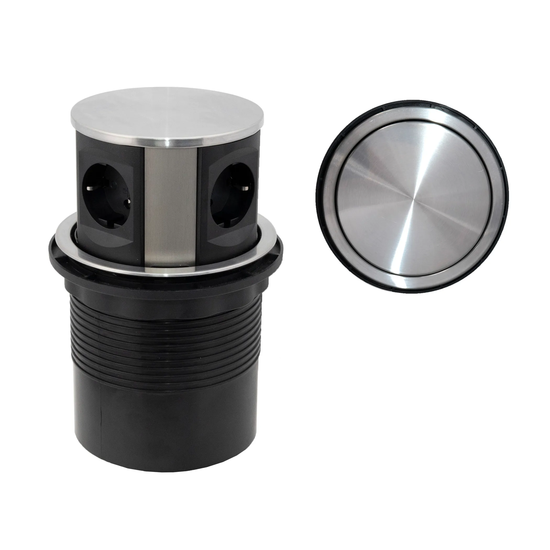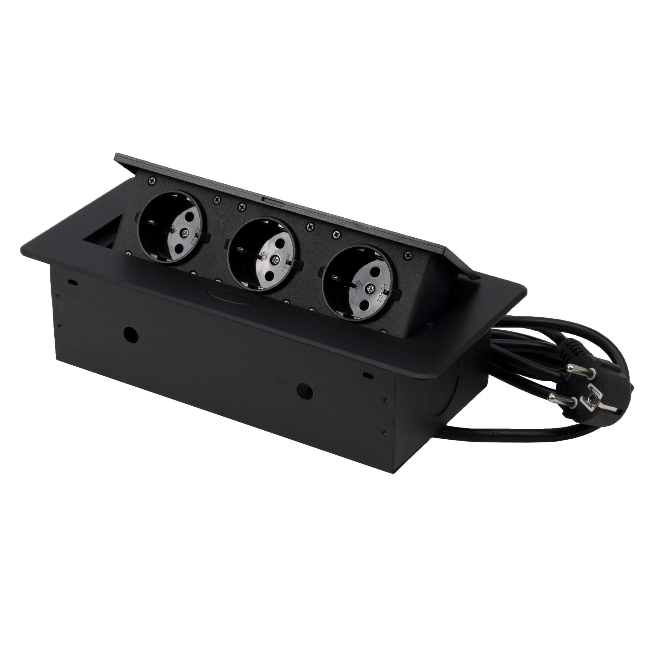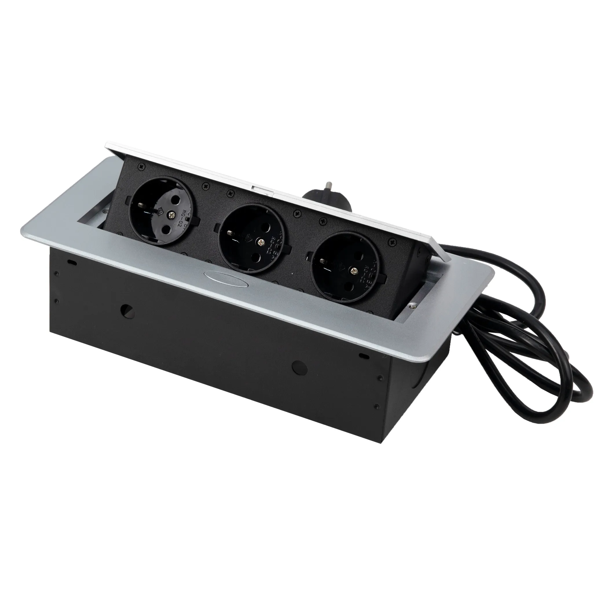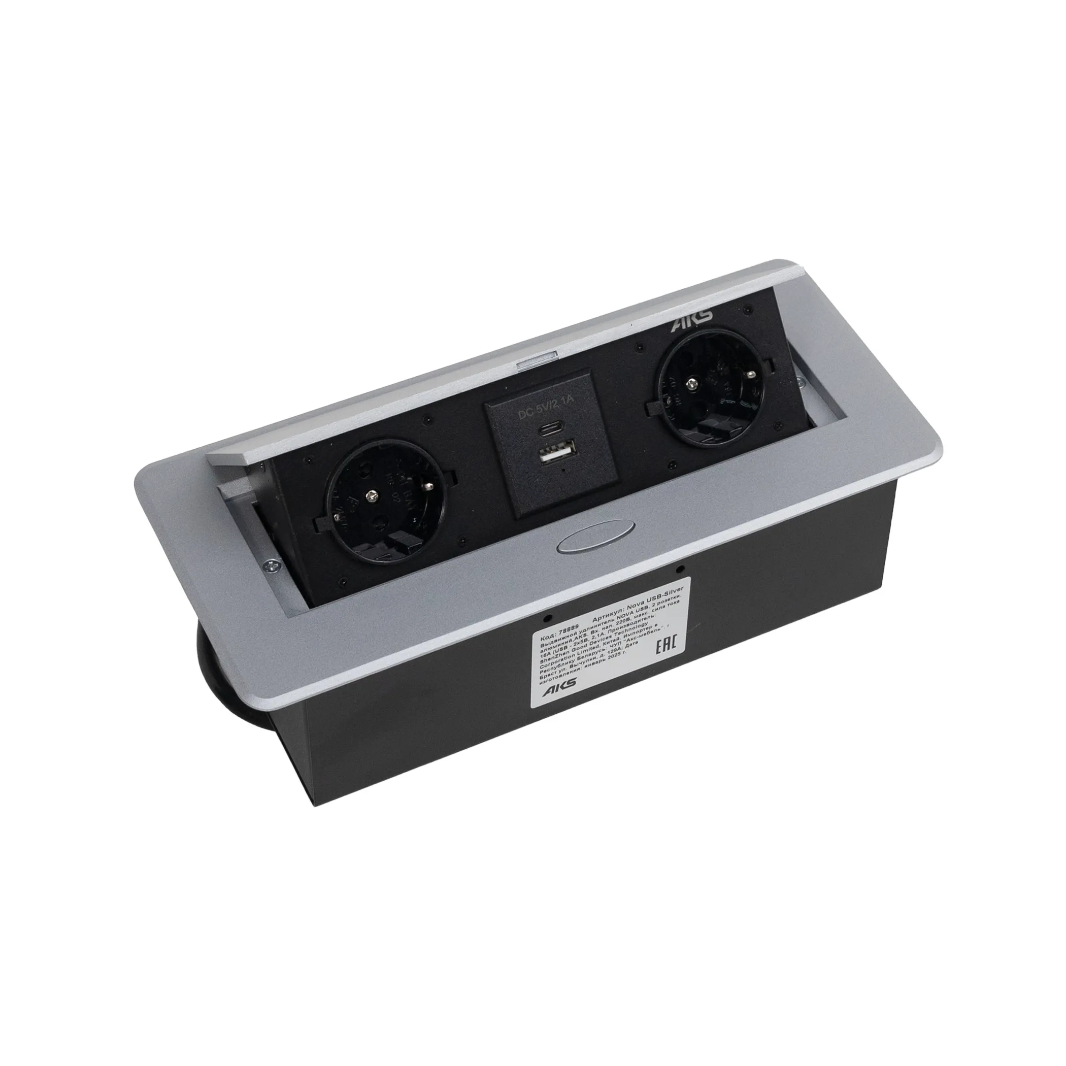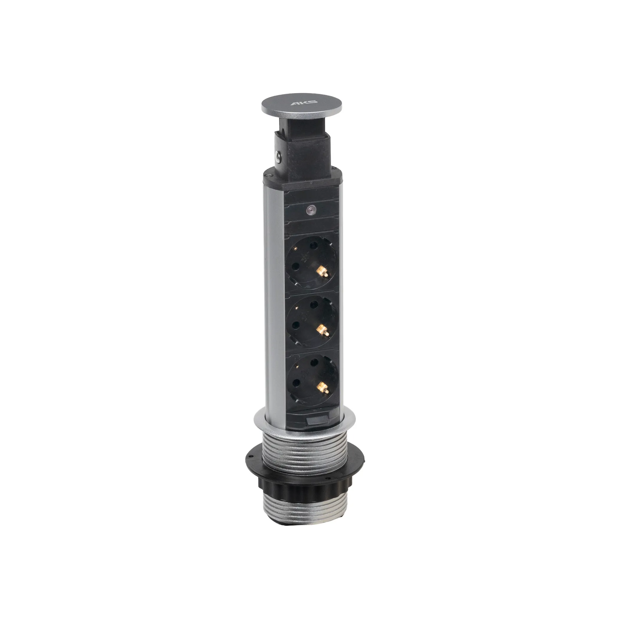 Выдвижной удлинитель Vulcan, 60 мм, 3 розетки, крышка пластик, цвет алюминий, AKS