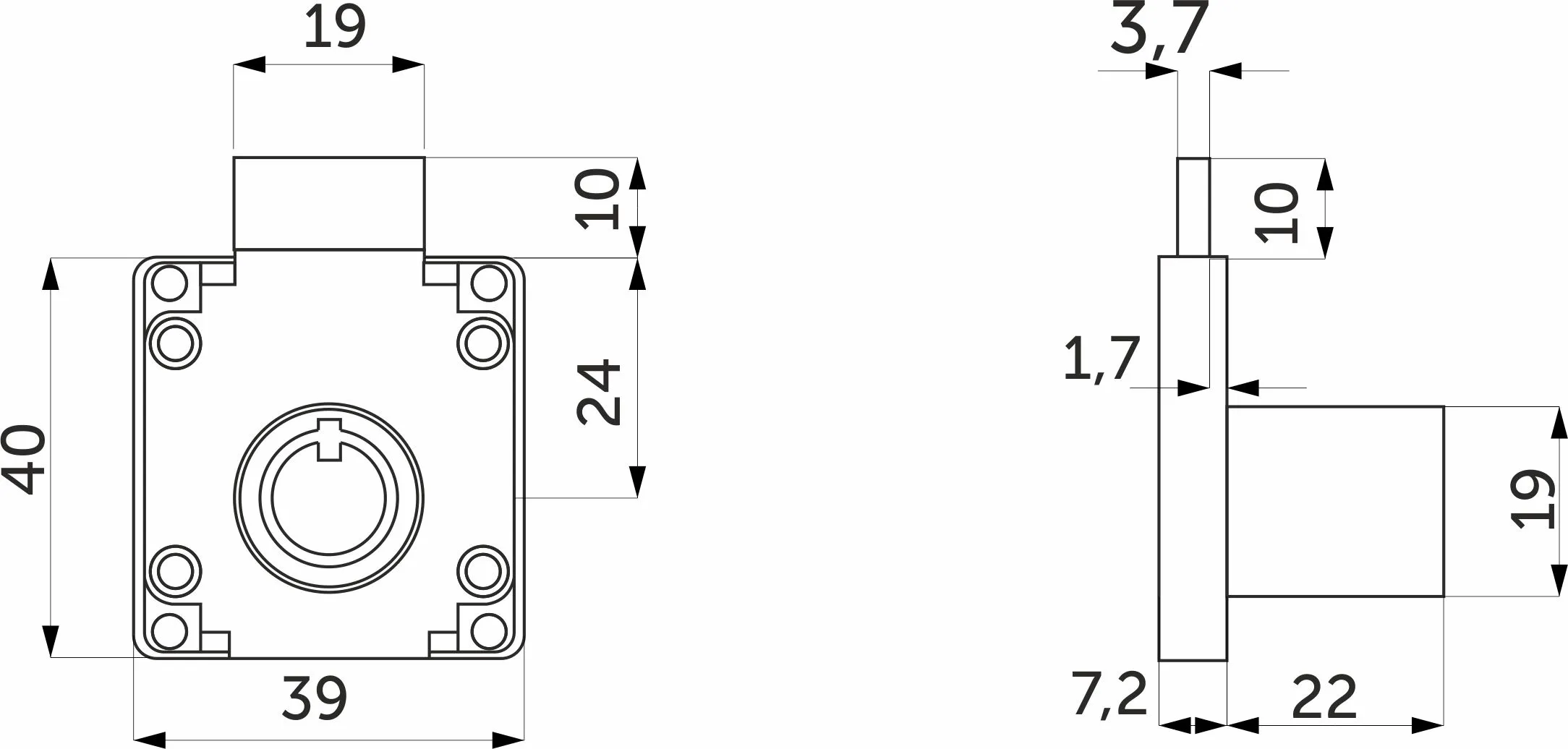 Для монтажа данного типа замков необходимо высверлить отверстие для личинки цилиндра, сам же корпус замка крепиться саморезами с обратной стороны фасада.