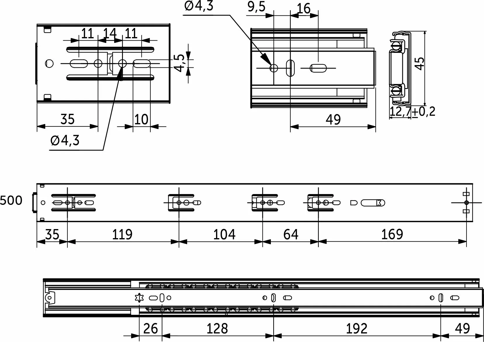 | Длина направляющей (L, мм) | 500 |
