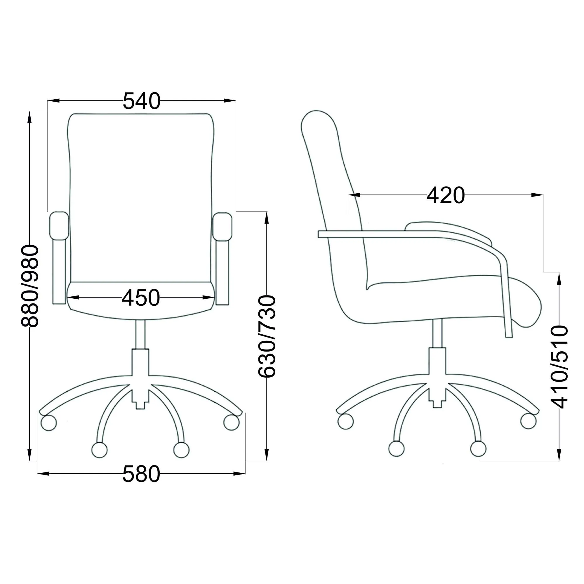 | Ширина с подлокотниками (мм) | 540 |