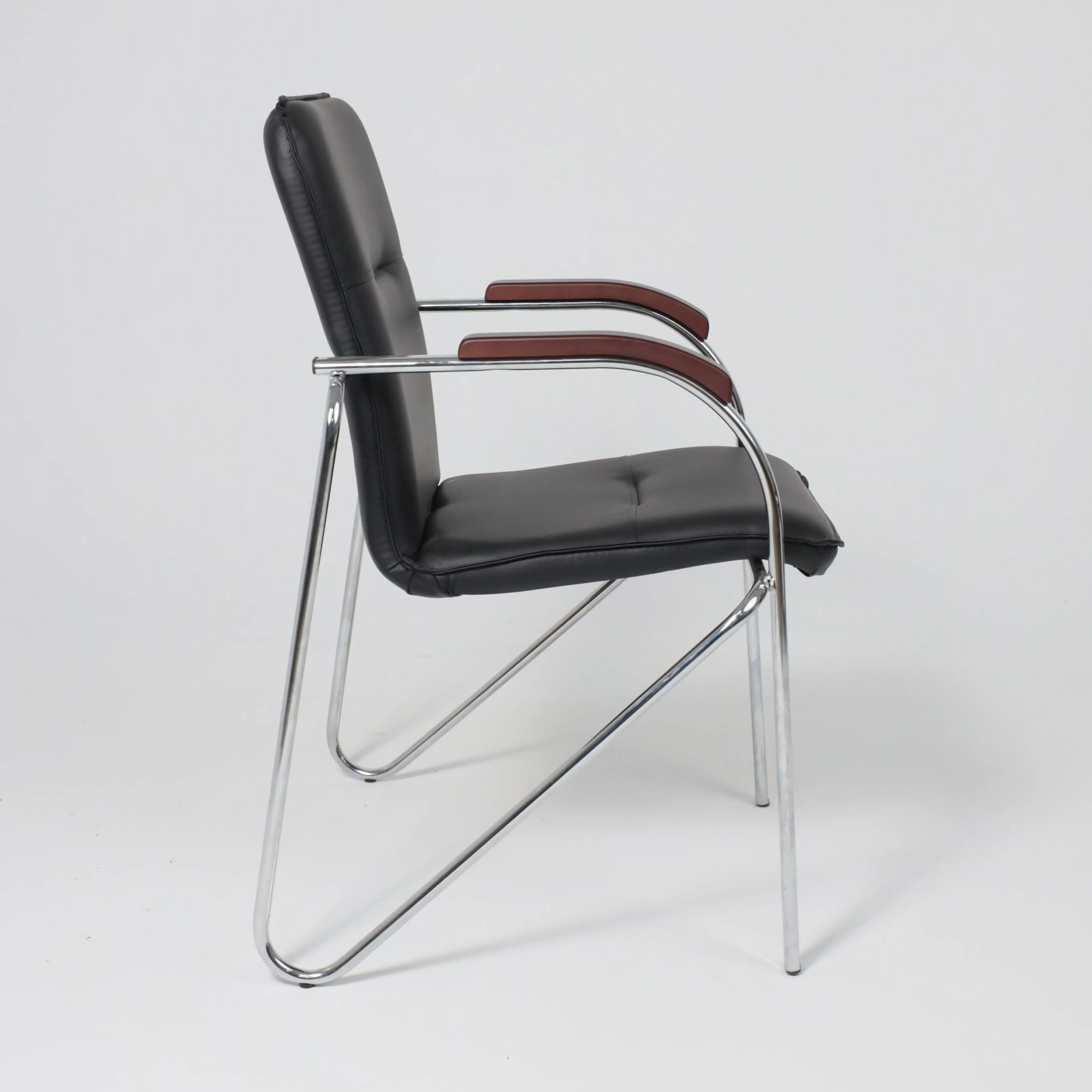 Классический стул САМБА изготовлен из надежной экокожи и прочного металла. Удобное посадочное место и наличие подлокотников создают максимальный комфорт. Стул отлично подойдет для офисного помещения.