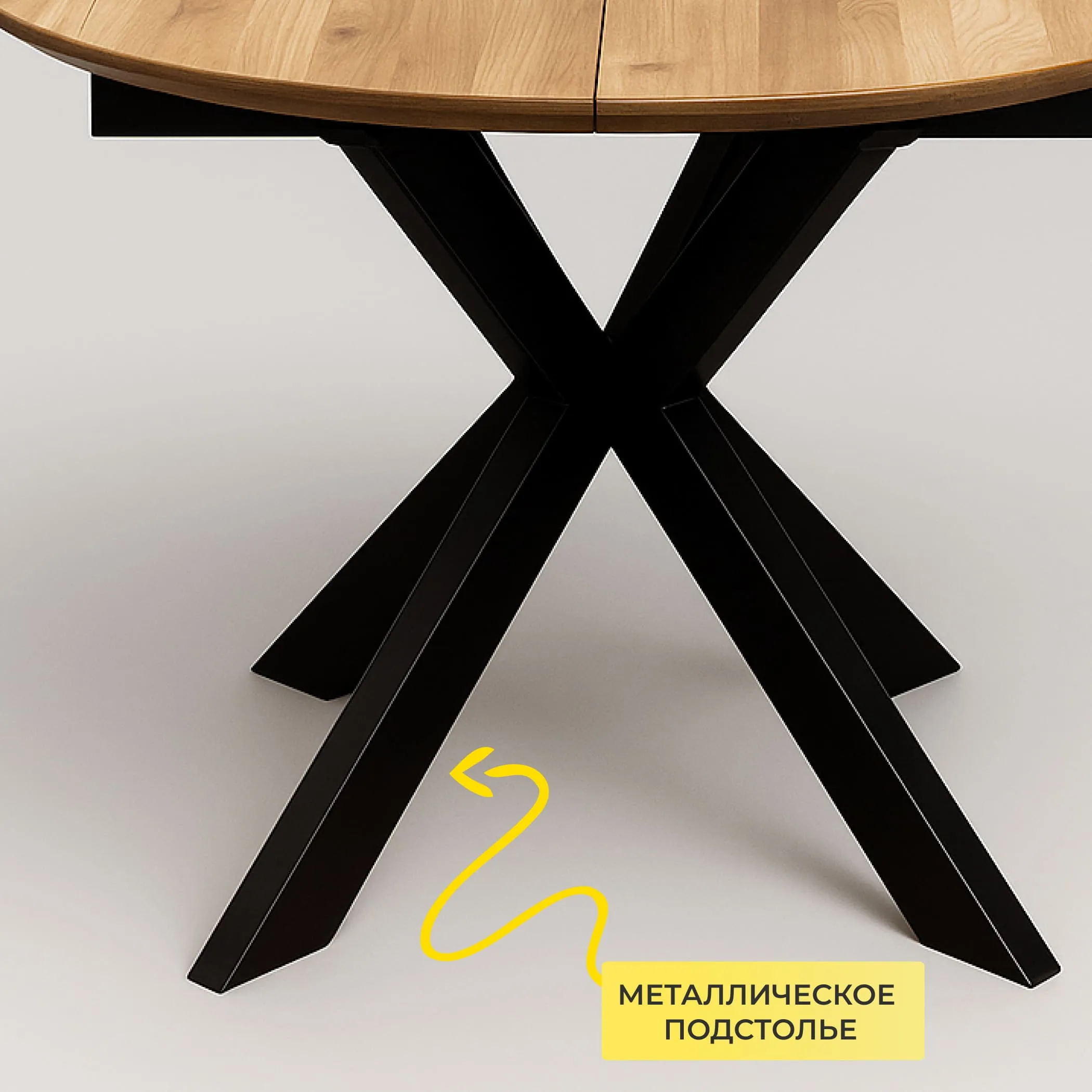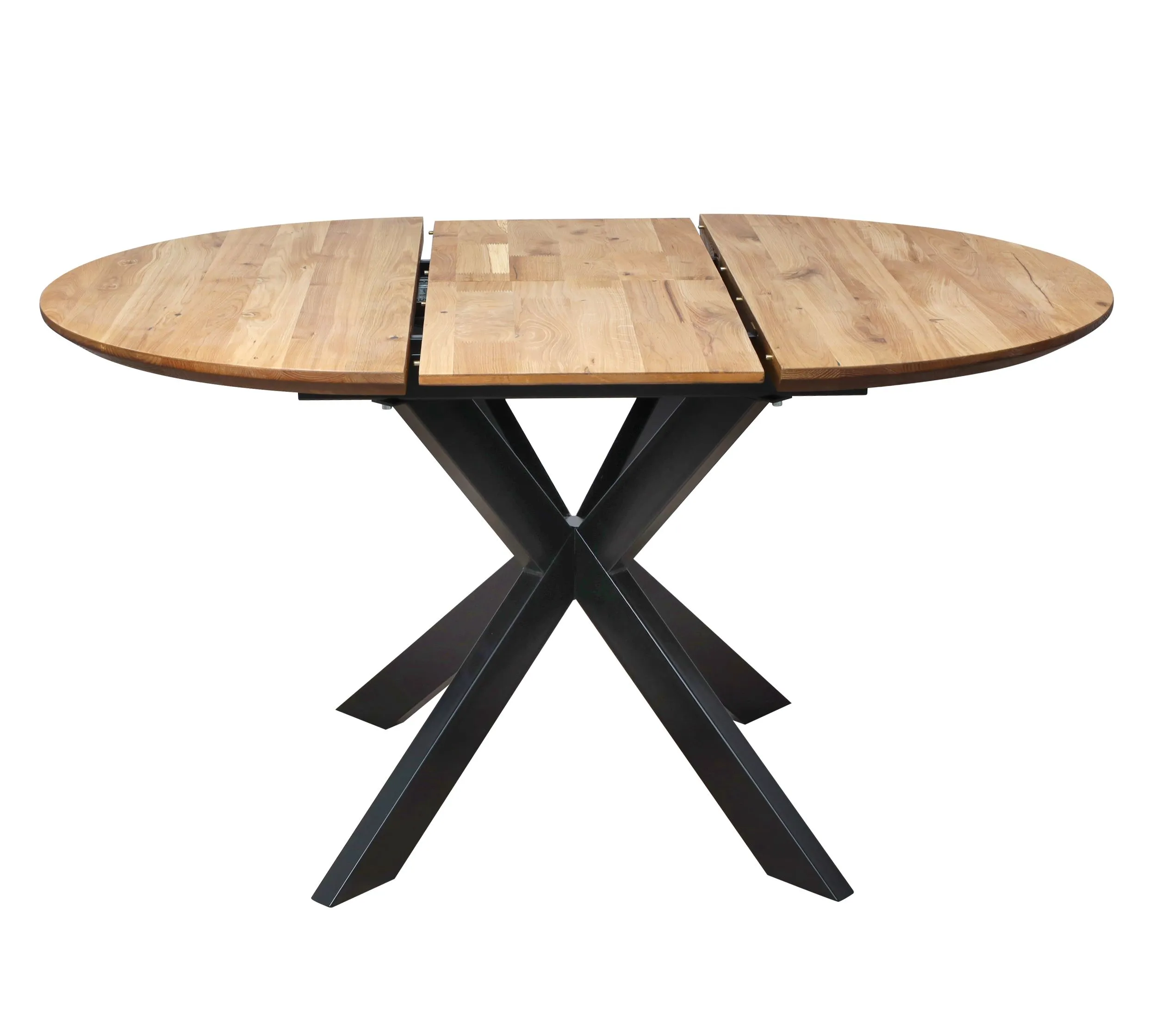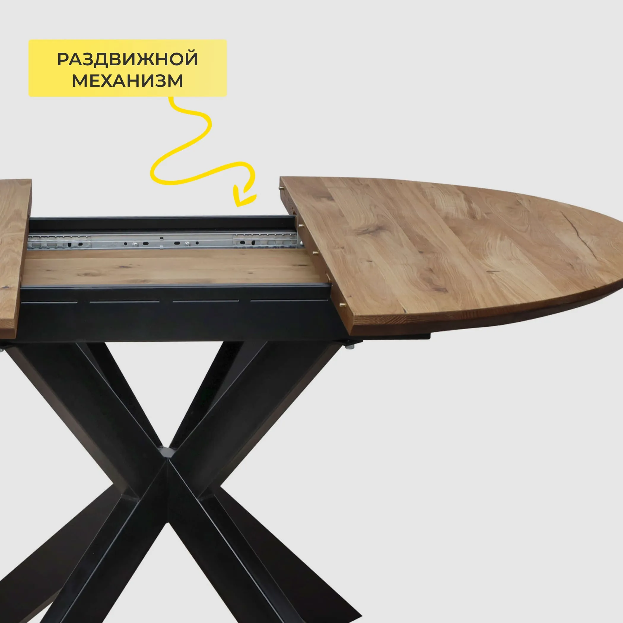 Обеденный стол РАУНД с раскладной столешницей. Круглая столешница толщиной 40 мм выполнена из инженерного массива. При необходимости длину стола можно увеличить на дополнительные 40 см.