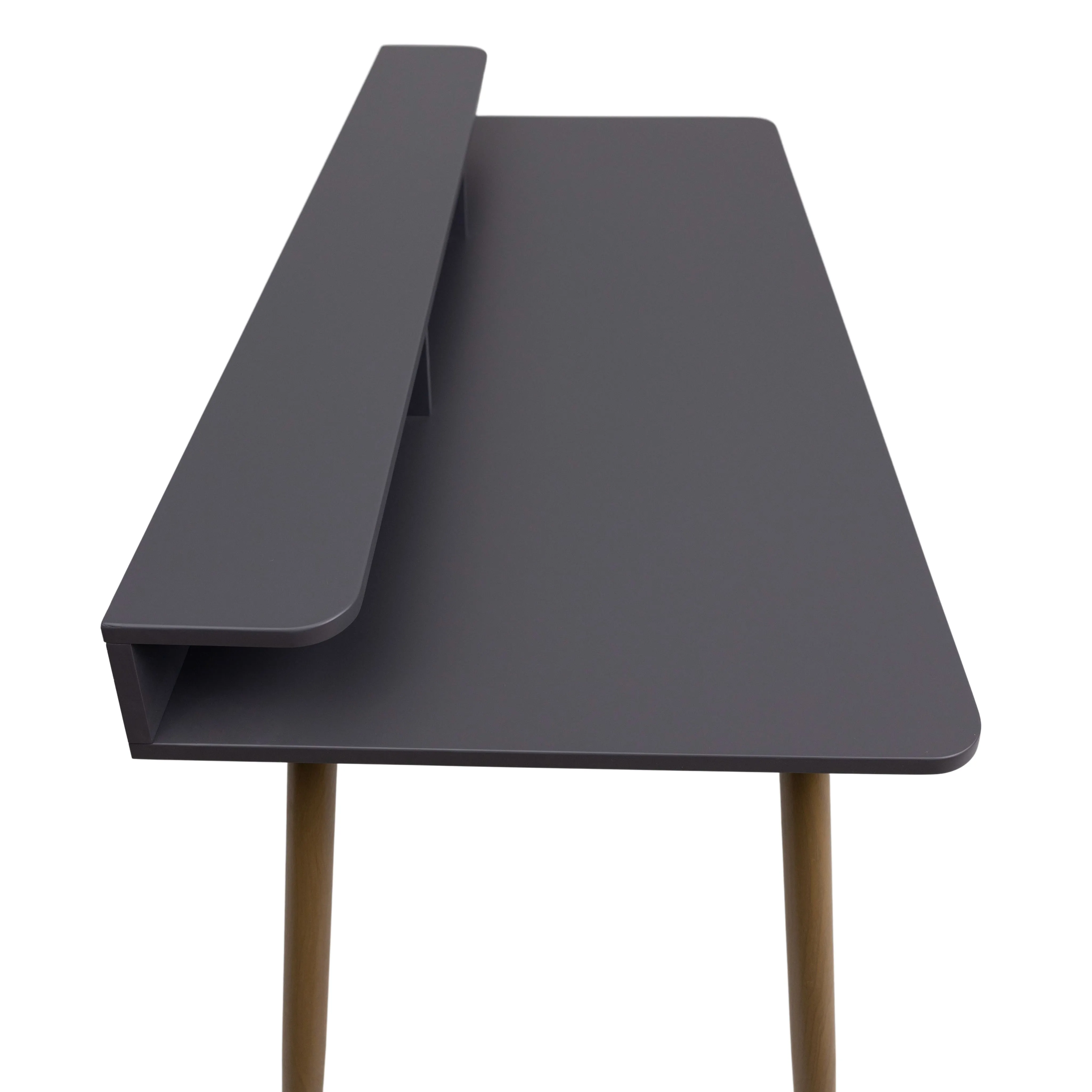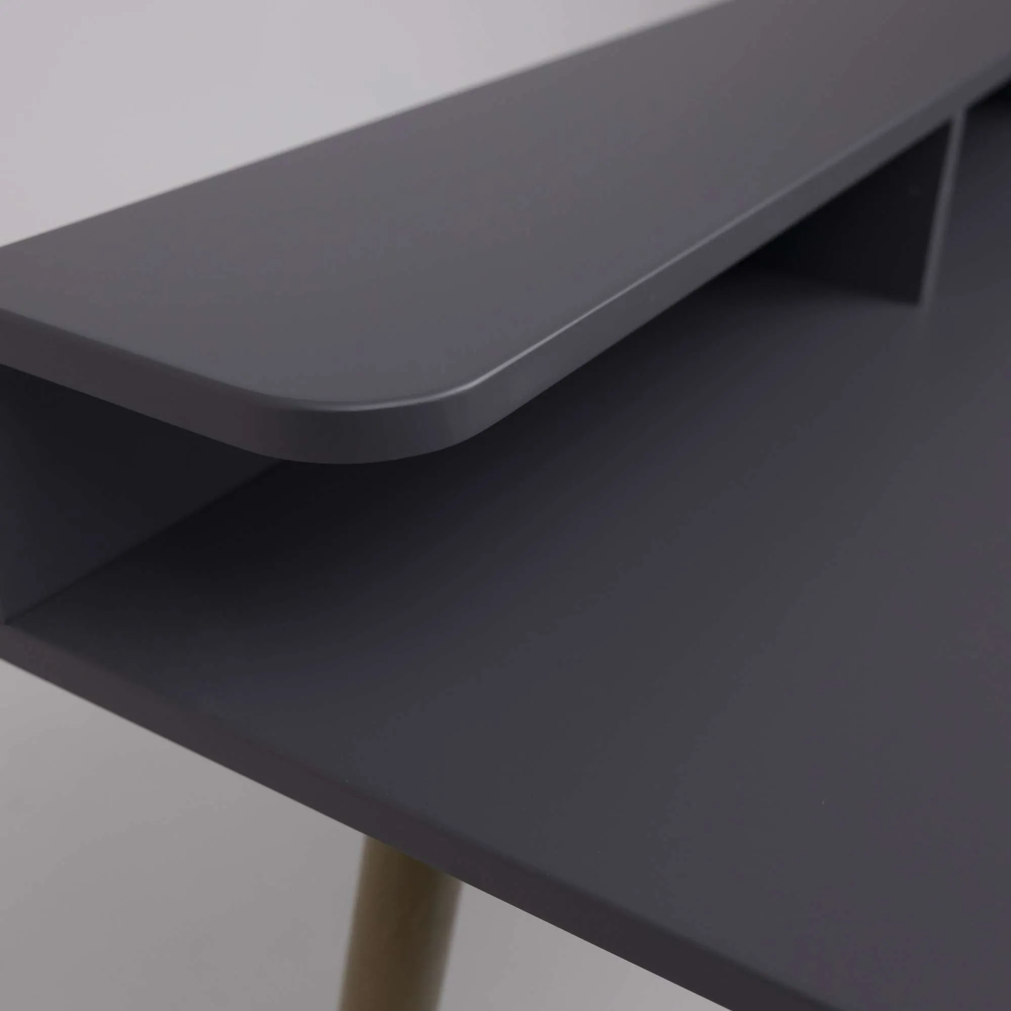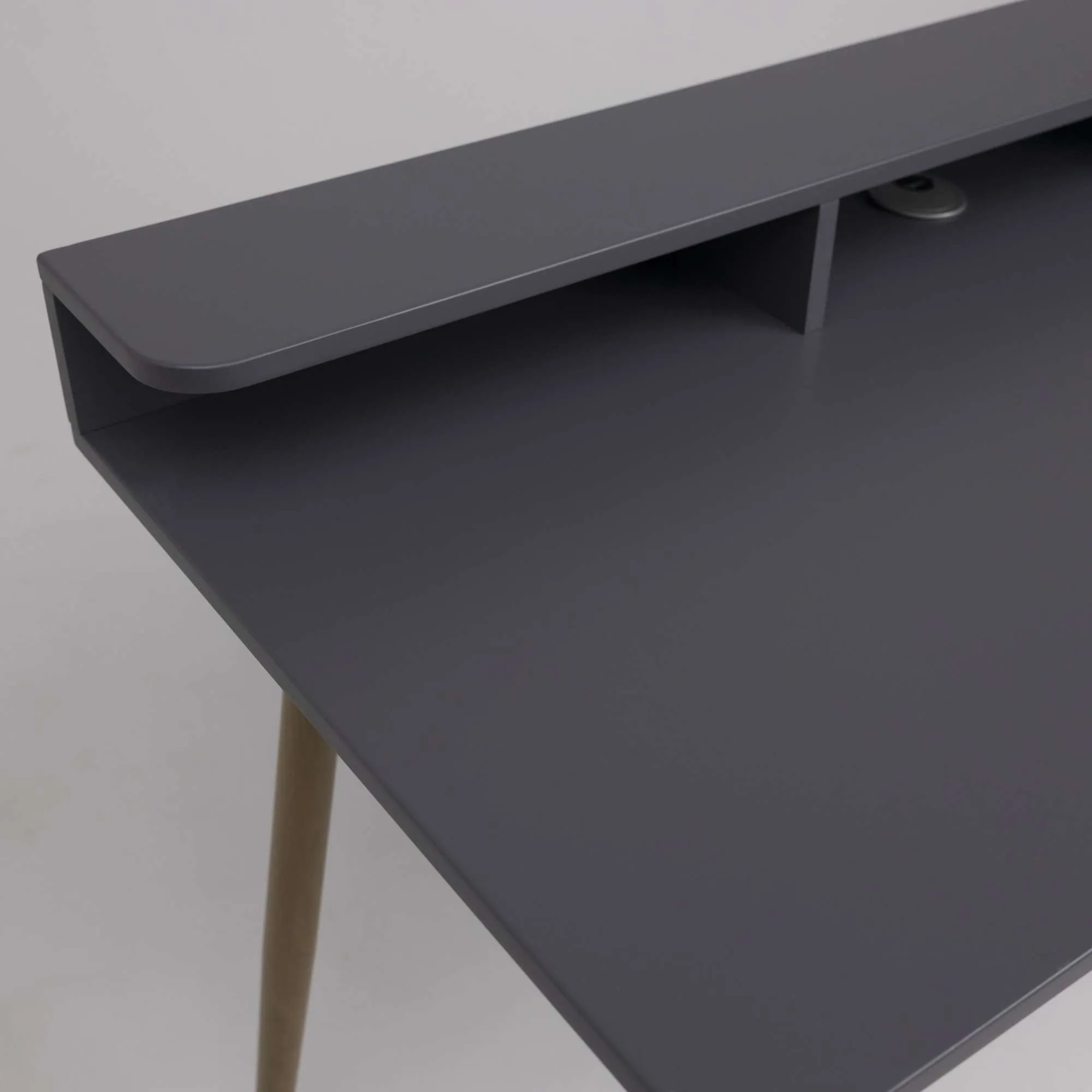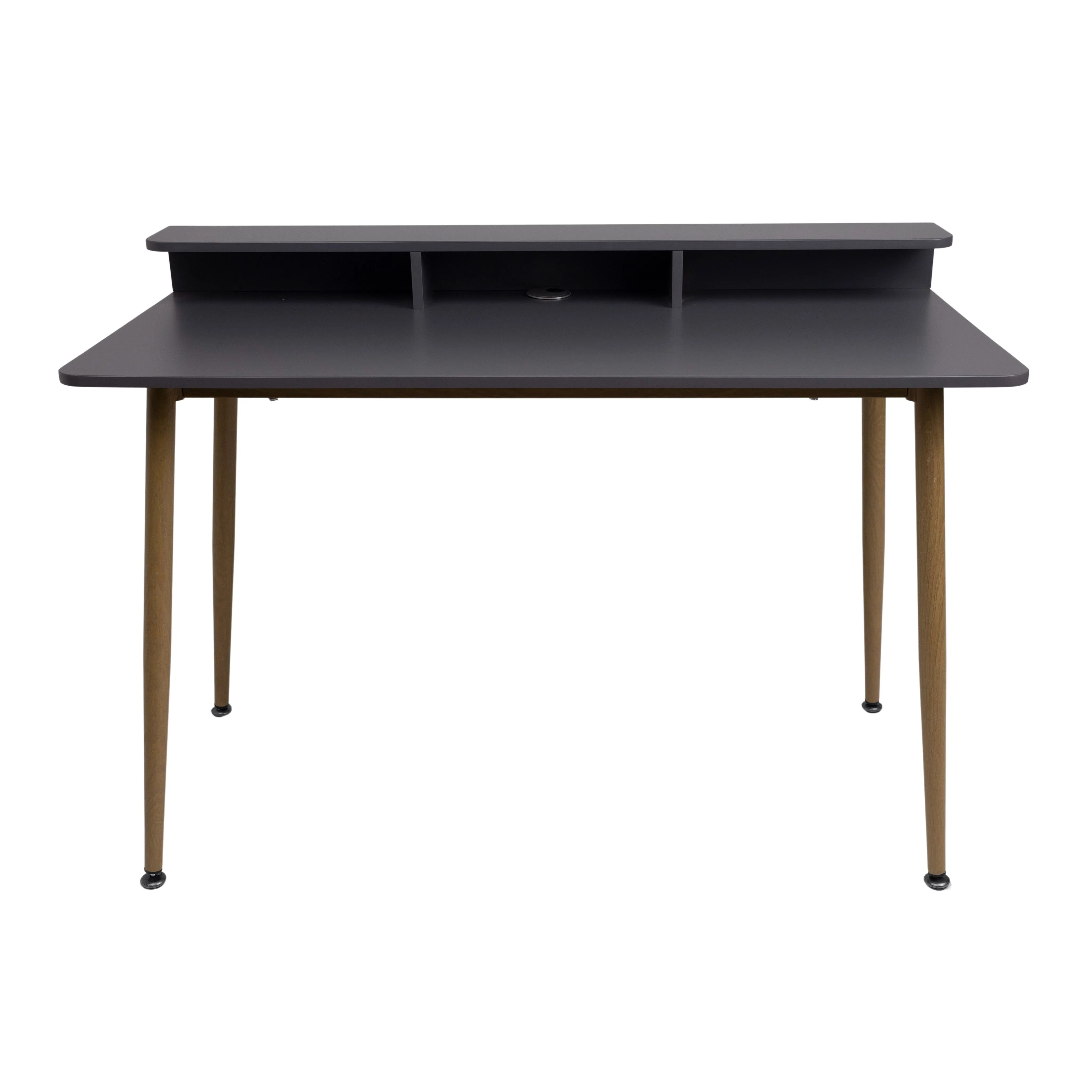 Стол оснащен полкой благодаря которой вы получаете много места для всех необходимых аксессуаров, канцтоваров. Имеет отверстие для кабелей с заглушкой в цвет столешницы.