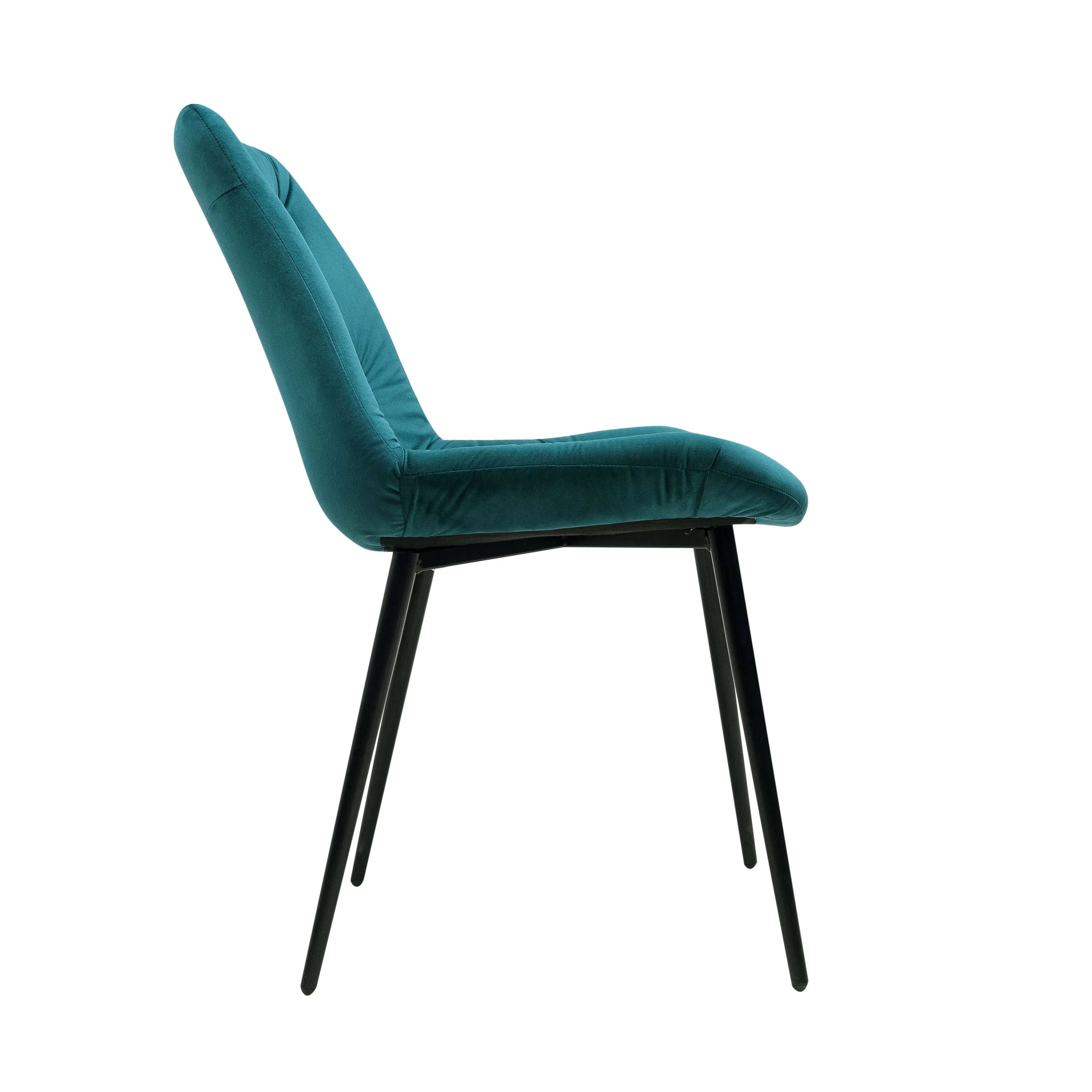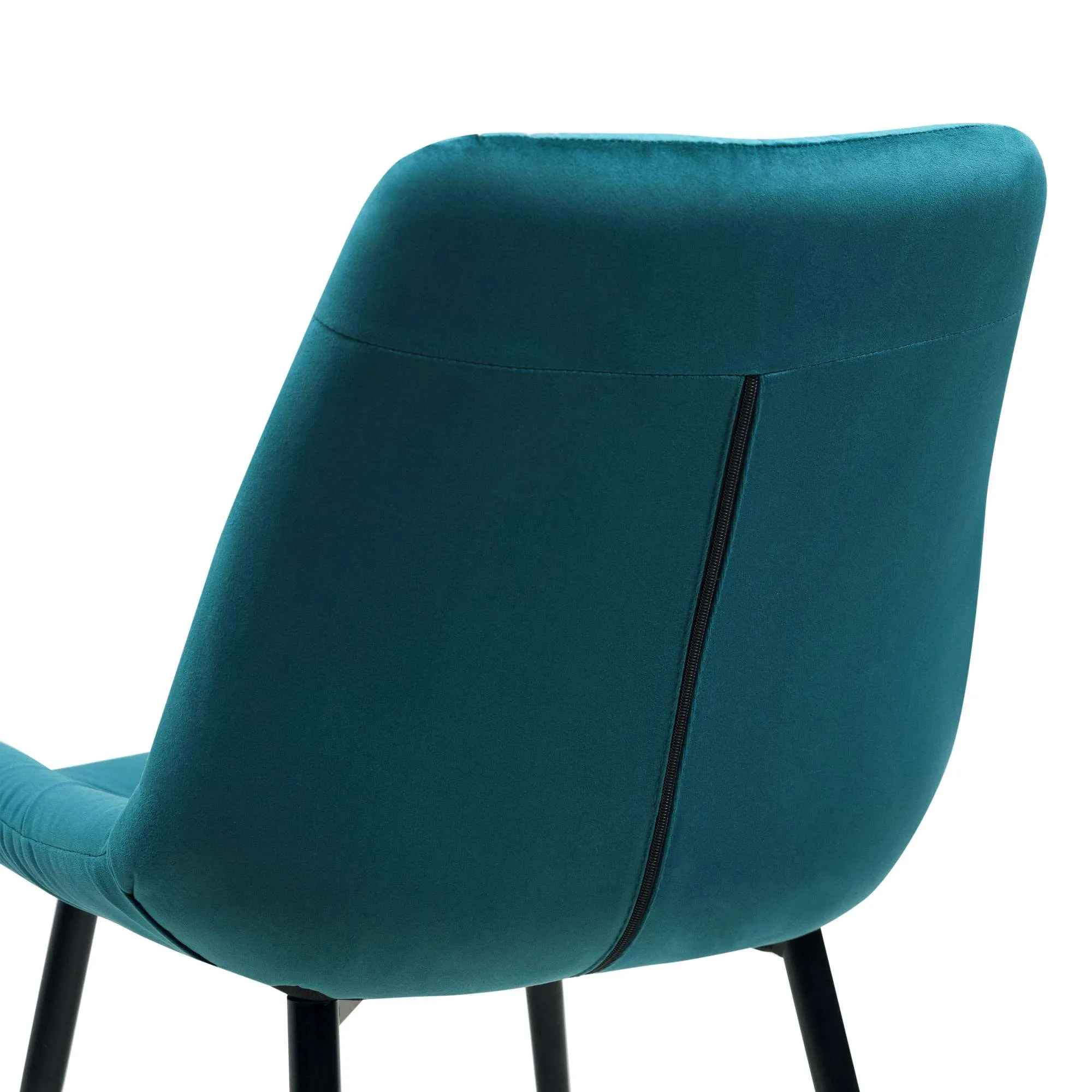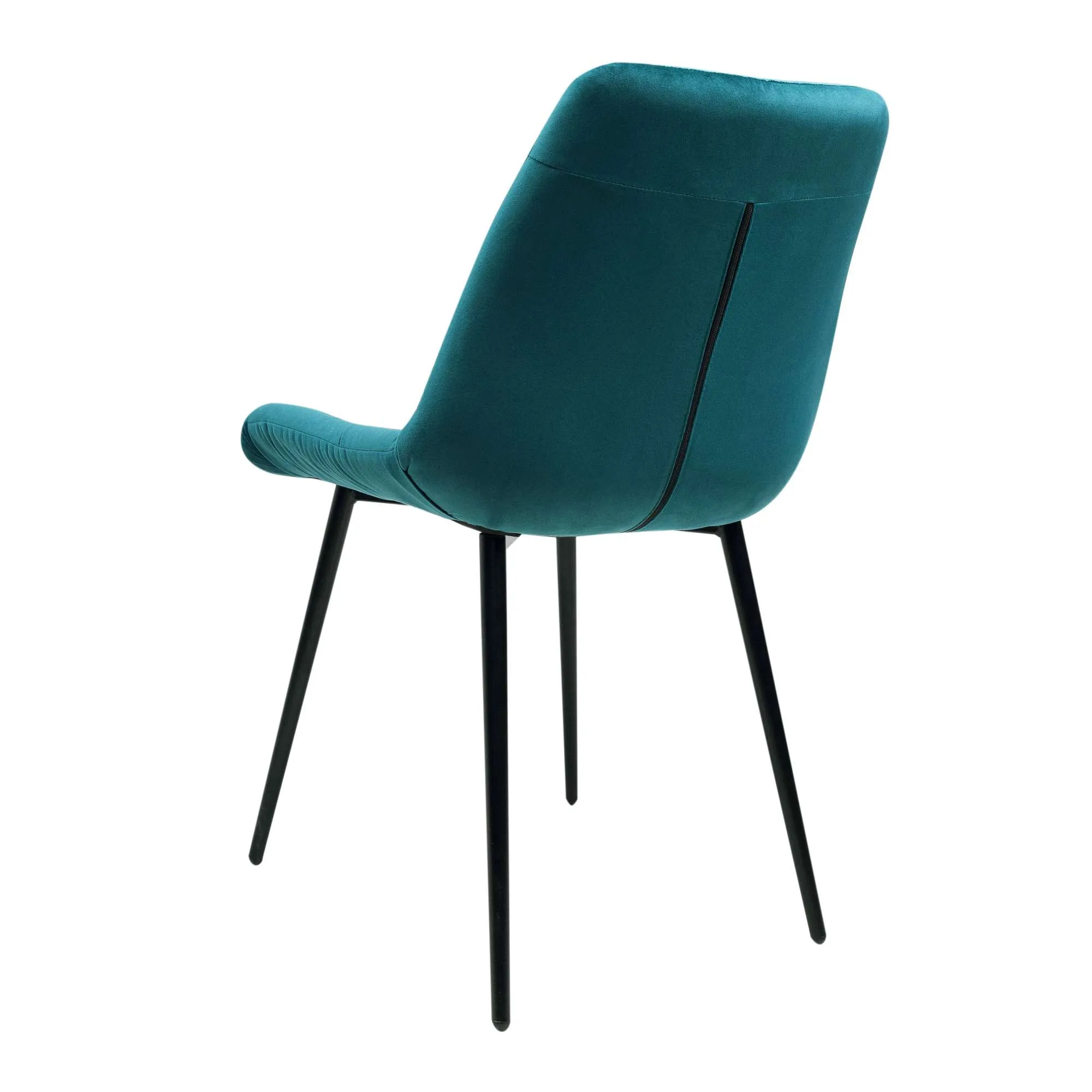 Кухонный стул в обивке из бархата без подлокотников. Внутренняя сторона спинки украшена декоративной строчкой. Лаконичный дизайн стульев подойдет к обеденному столу любого дизайна.