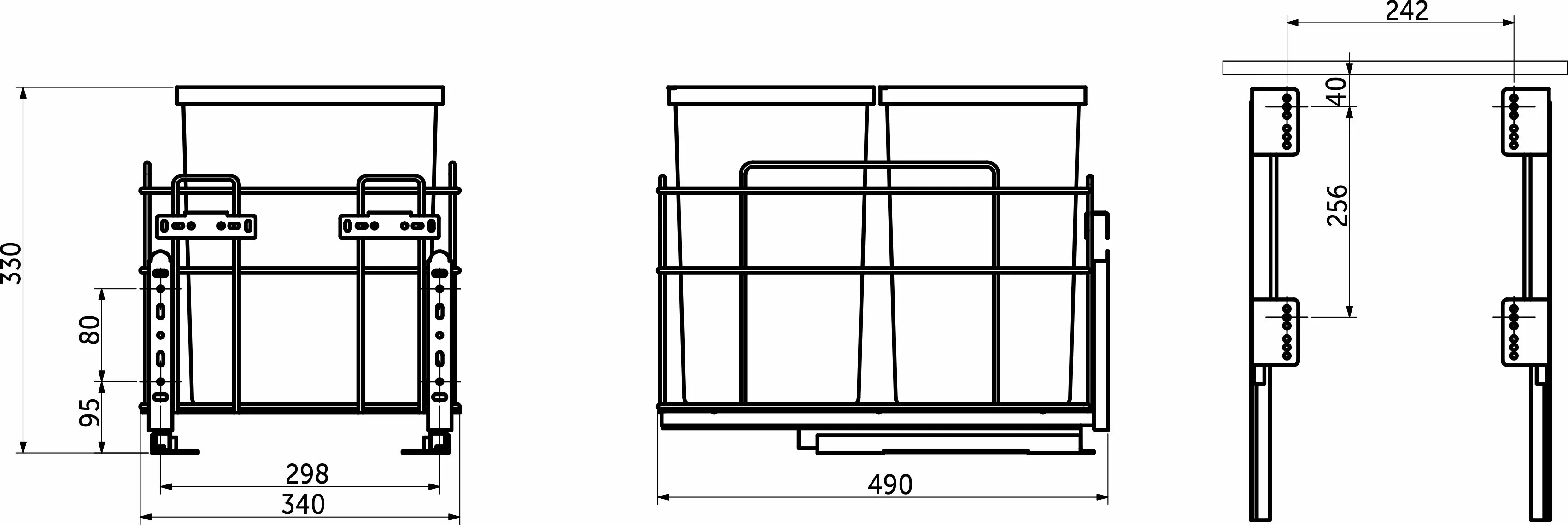 Для фасада 400 мм, корзина нижнего крепления, на направляющих скрытого монтажа с доводчиком, с креплениями к фасаду, габаритные размеры Ш340хГ480хВ350.