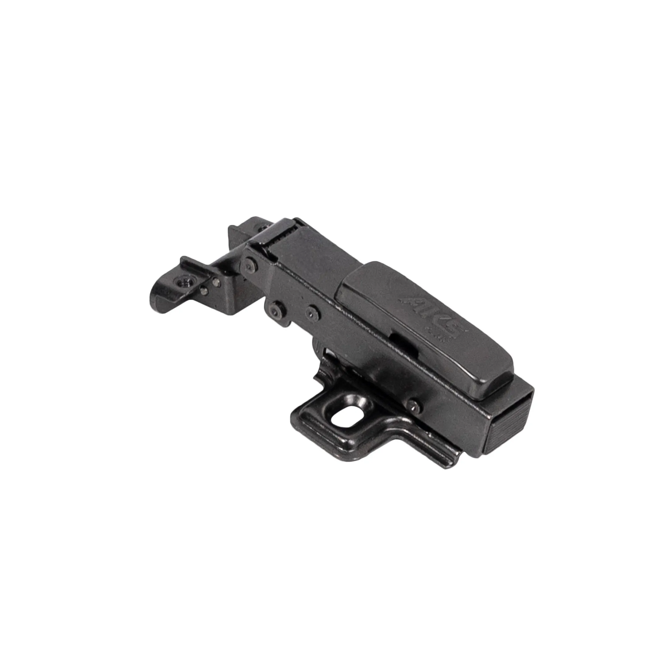 Петля BLACK накладная для алюминиевых рамок с клипом - механизм для открывания и закрывания мебельной дверцы, специально предназначенный для рамочных алюминиевых фасадов. Система быстрого монтажа (плечо скрепляется с ответной планкой посредством защелкивания). Высота ответной планки H = 0 мм.