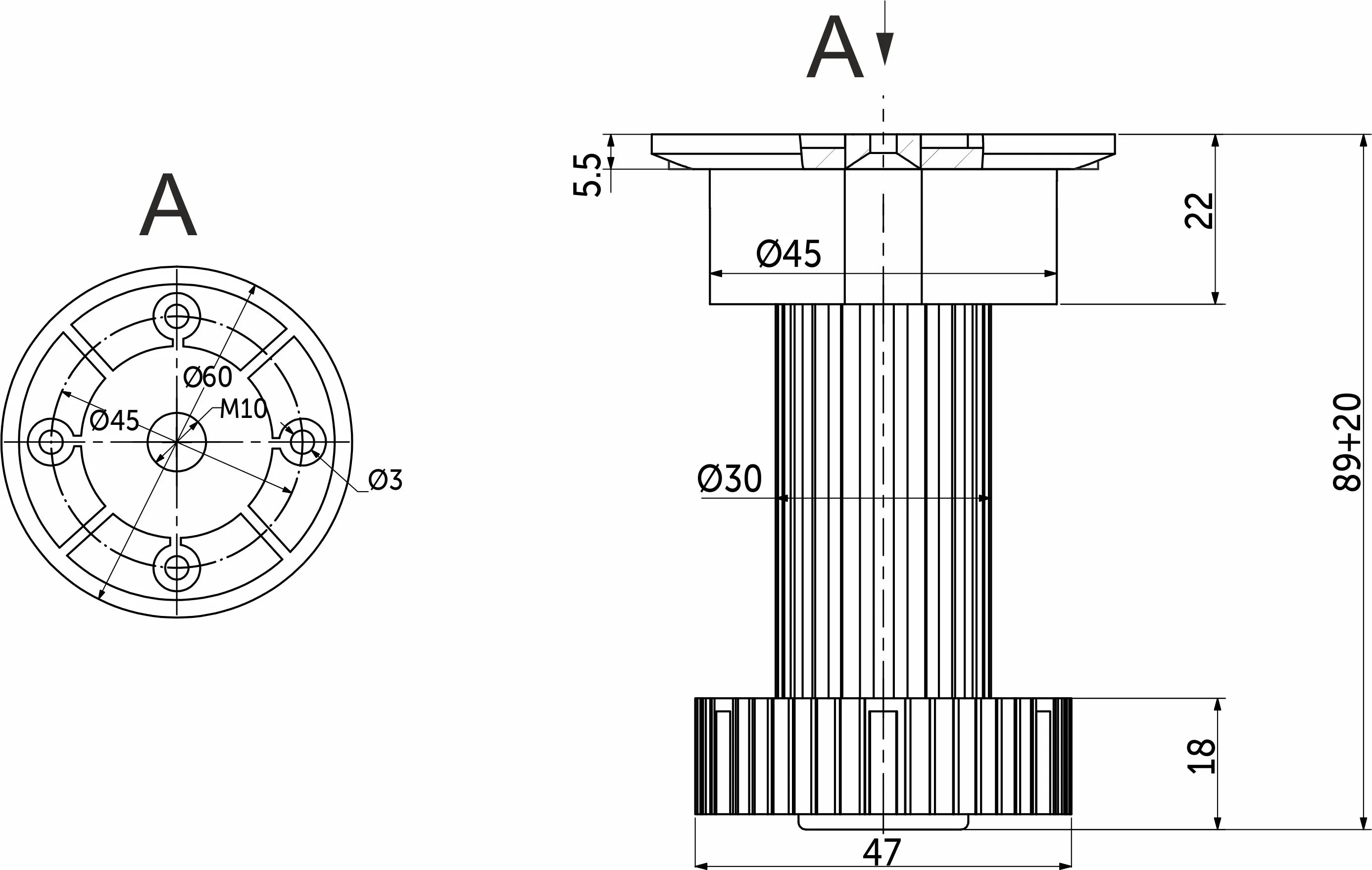 Нагрузка на опору - 90кг. Материал - полипропилен. Опора регулируется по высоте.
