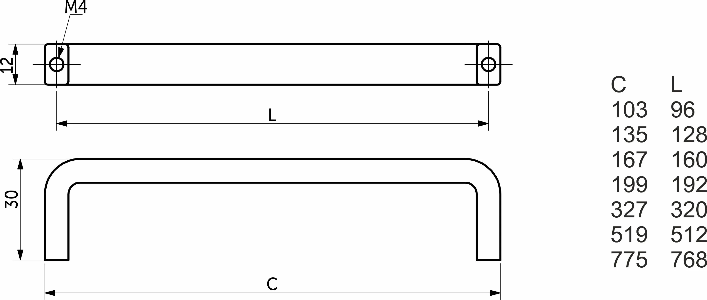 Ручка меб. скоба алюм. STRIPS 768/775 матовый хром, AKS