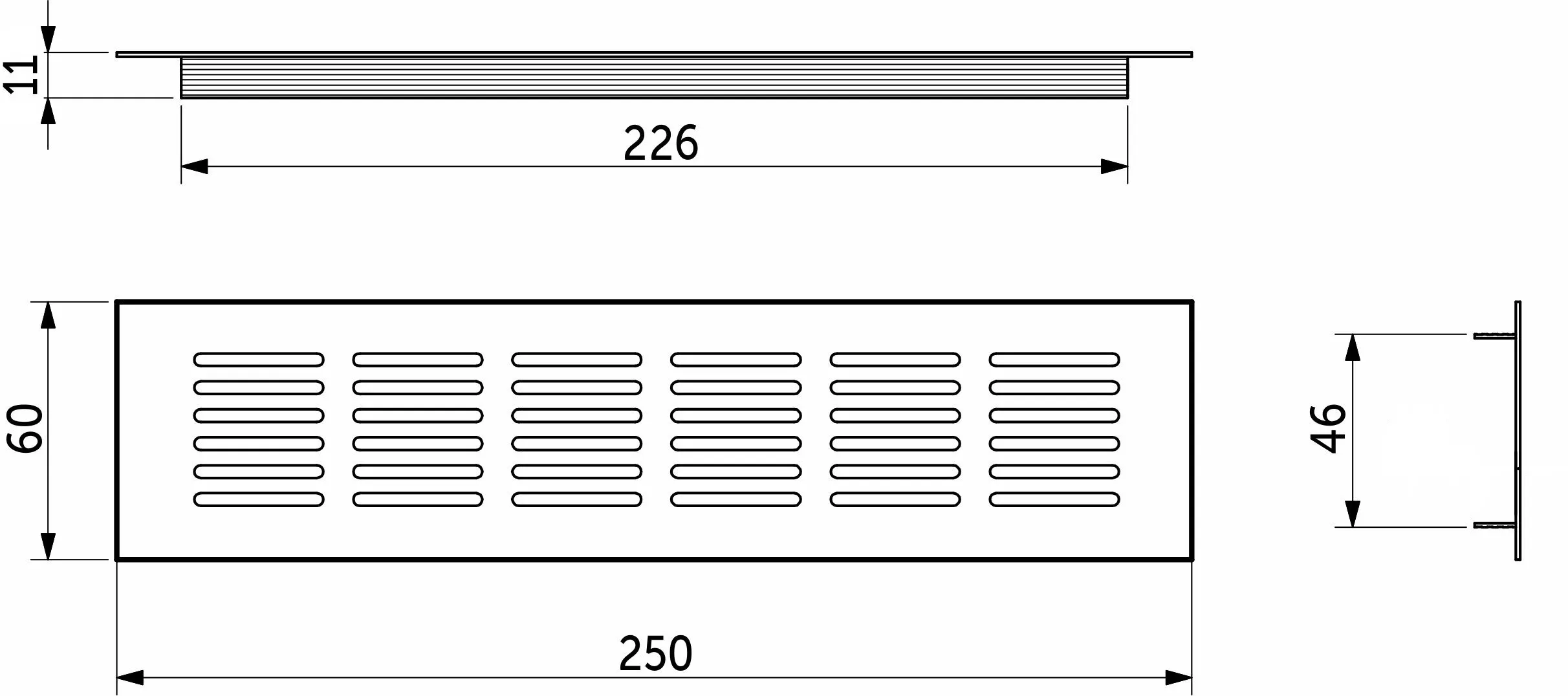 Решетка вентиляционная 250х60мм черная алюминий AKS