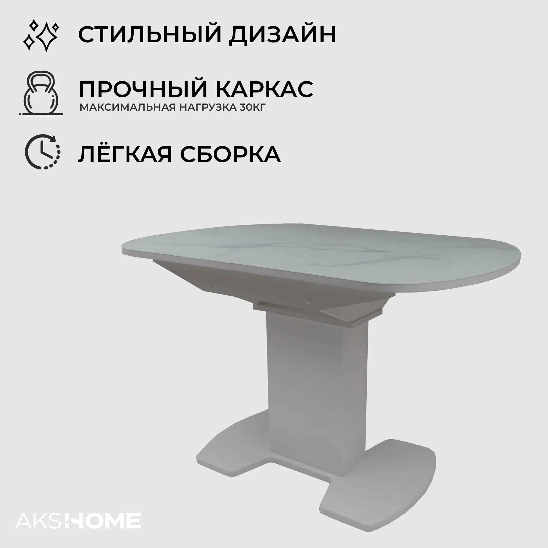 Стол TIRK RADIAL-94, раздвижной 94(126)х64, Дымчатая керамика/Чёрный