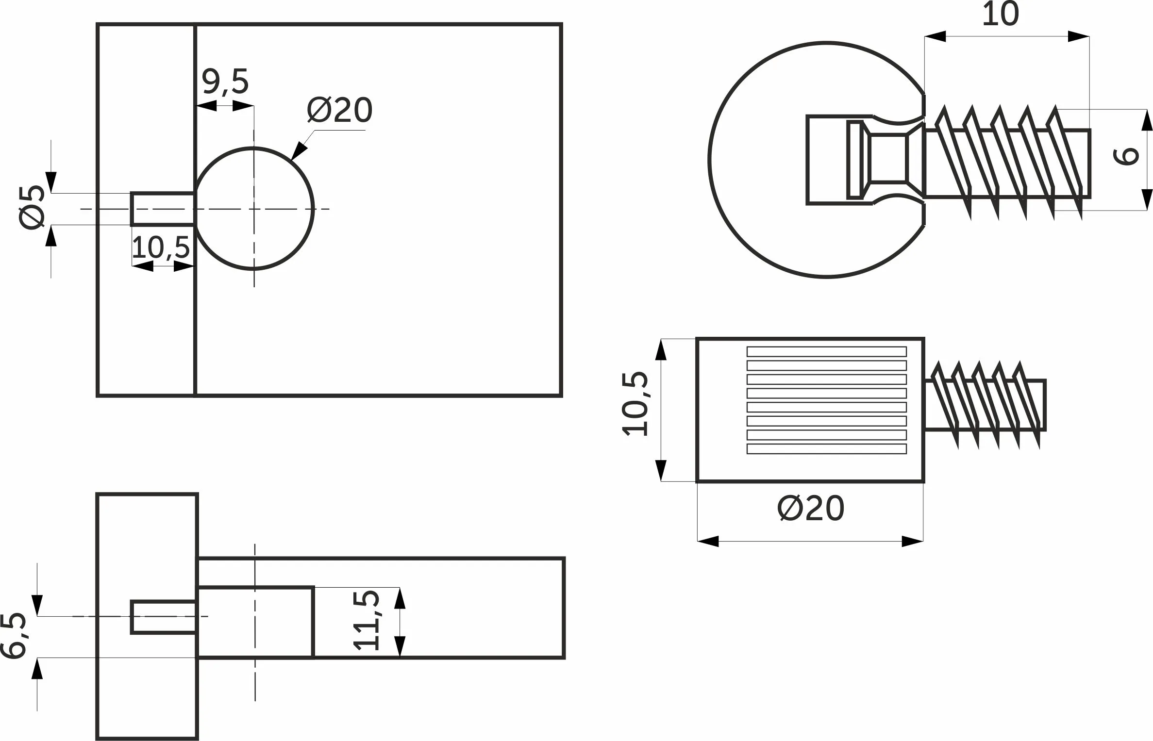 Полкодержатель d20 со штоком-евровинтом 6*10 - это упрощенный вариант всем хорошо известной эксцентриковой стяжки быстрого монтажа или Rafix, которая чаще всего используется как полкодержатель, но у описываемого аналога отсутствует эксцентриковая фиксация.