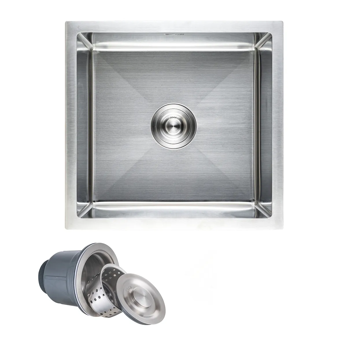 Мойка н/сталь, квадратная одночашевая, 500*500мм, мат сатин, PVD, врезн на/вровень столешнице, AKS (3,2мм)
