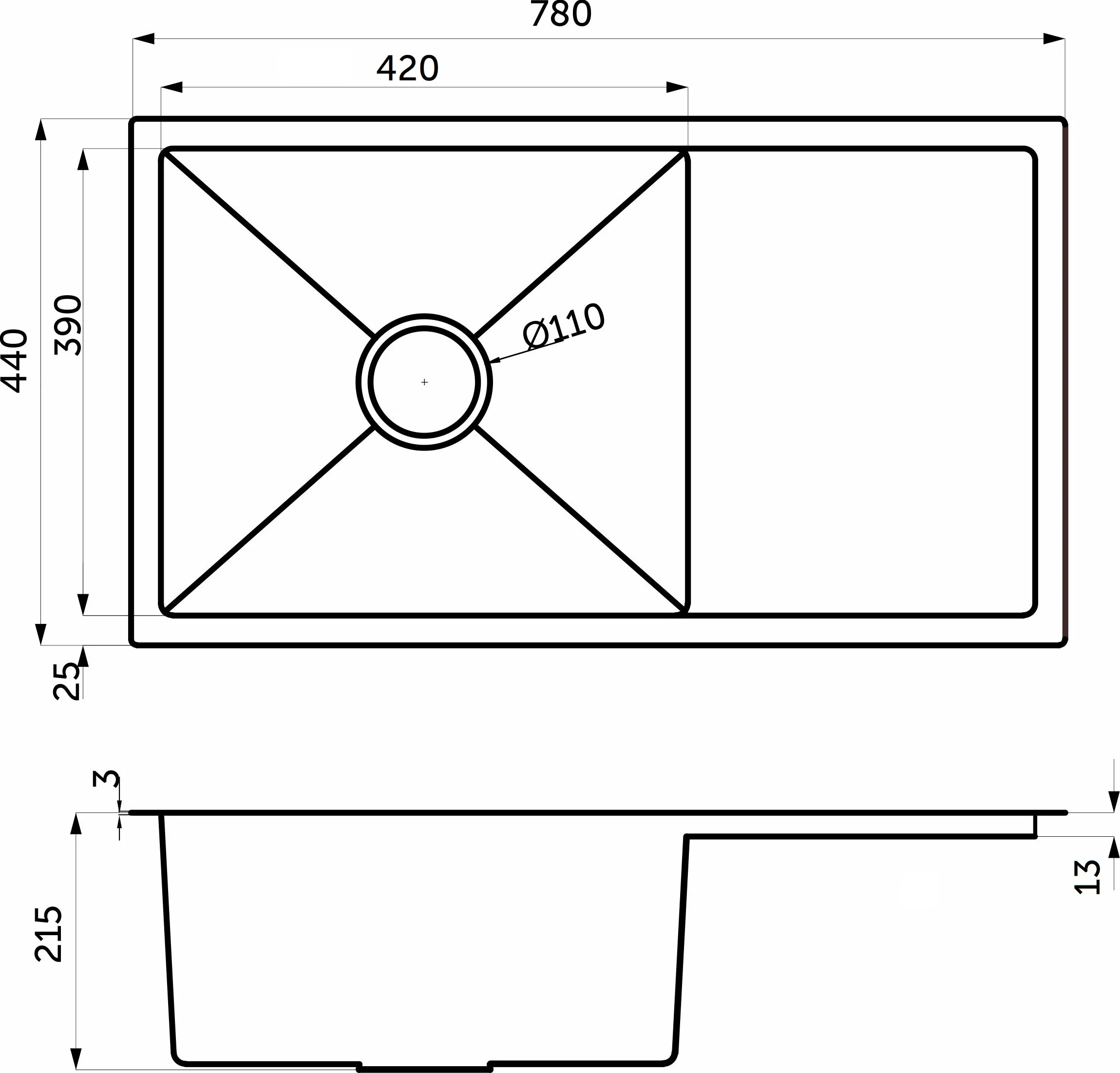 | Длина (L, мм) | 780 |