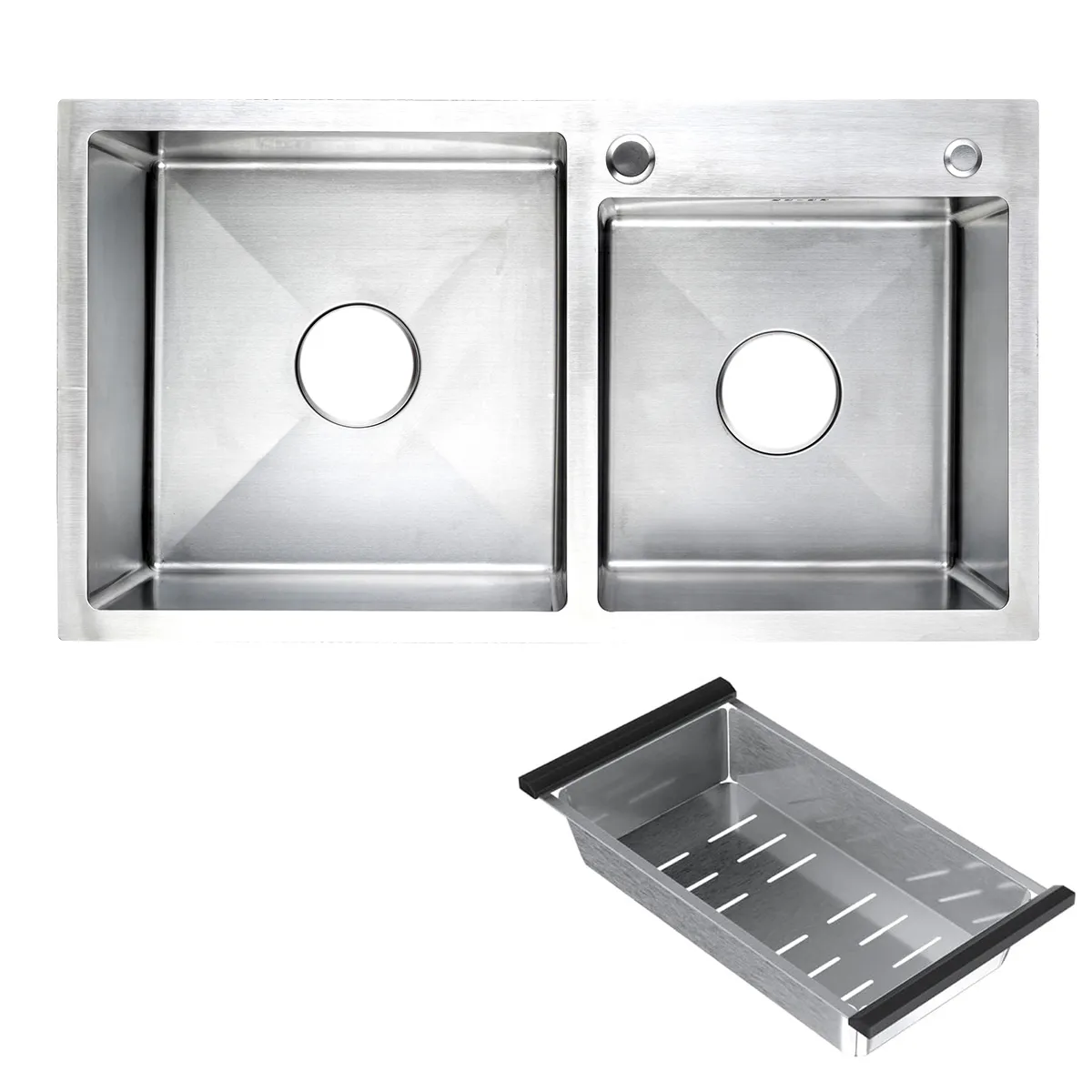 Форма мойки: прямоугольная, конструкция мойки: двухчашевая.