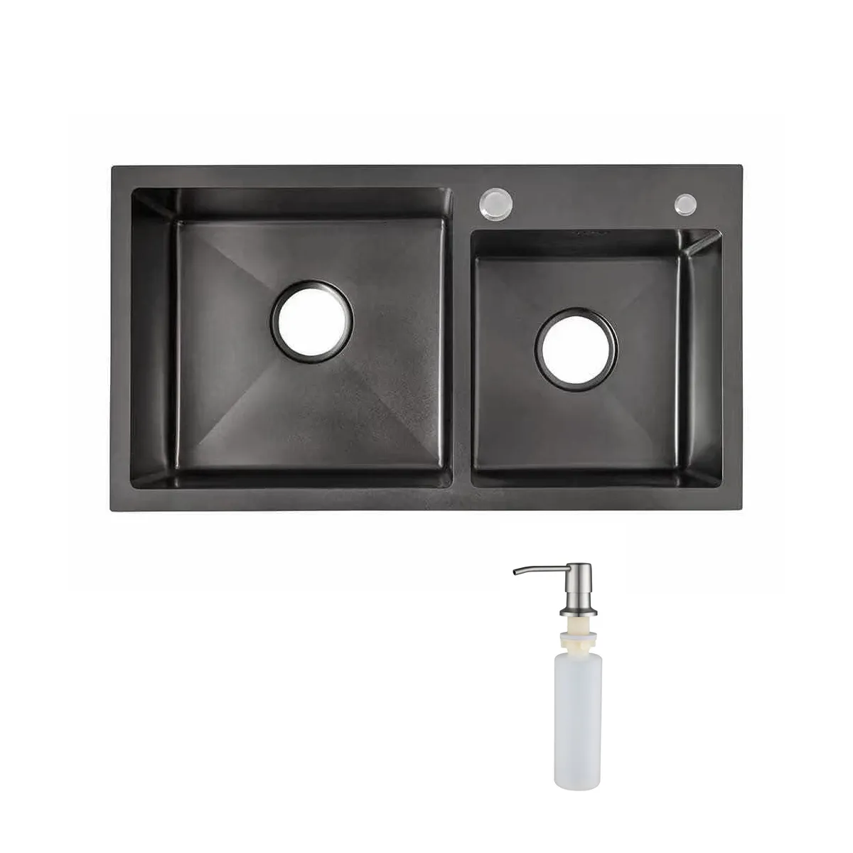 Мойка н/сталь, прямоугольная двухчашевая, 780*430мм, черный, универсальная (3,2мм)