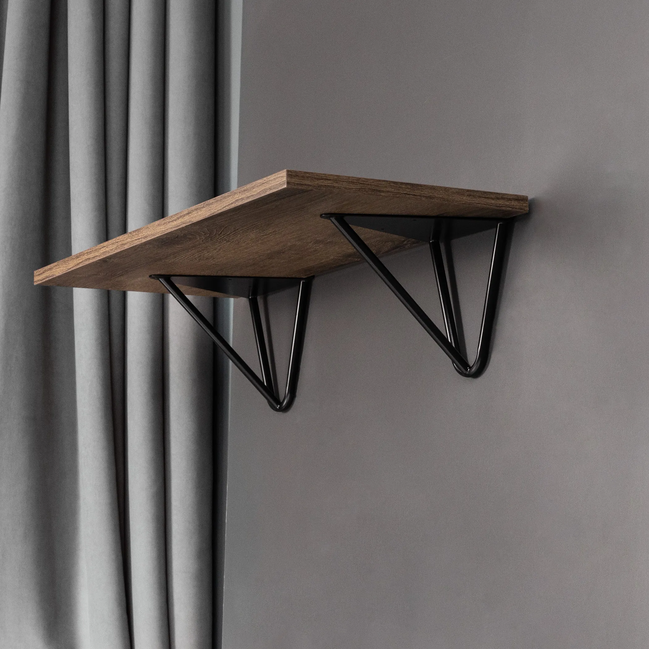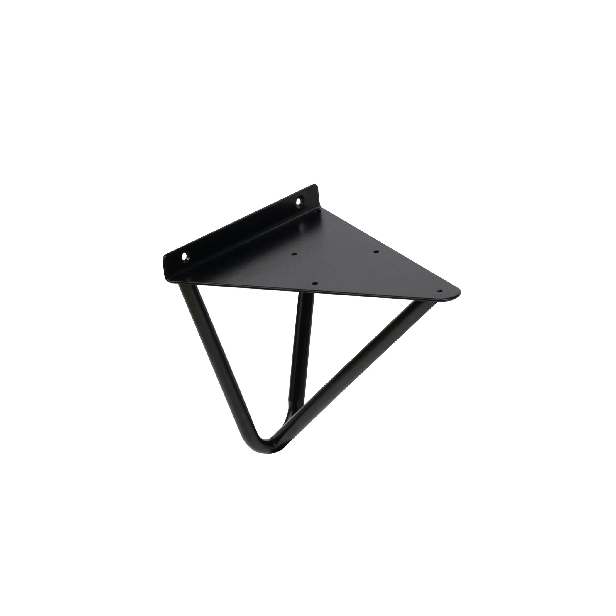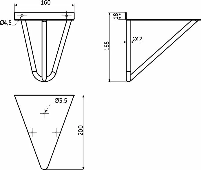 Декоративный держатель полки, размером 185*200 мм. Цвет - черный. Используется для крепления полок из ДСП к стене, а также служит декоративным элементом в интерьере. Выполнен из прочного материала - сталь. Выдерживает нагрузку на пару - 70 кг.