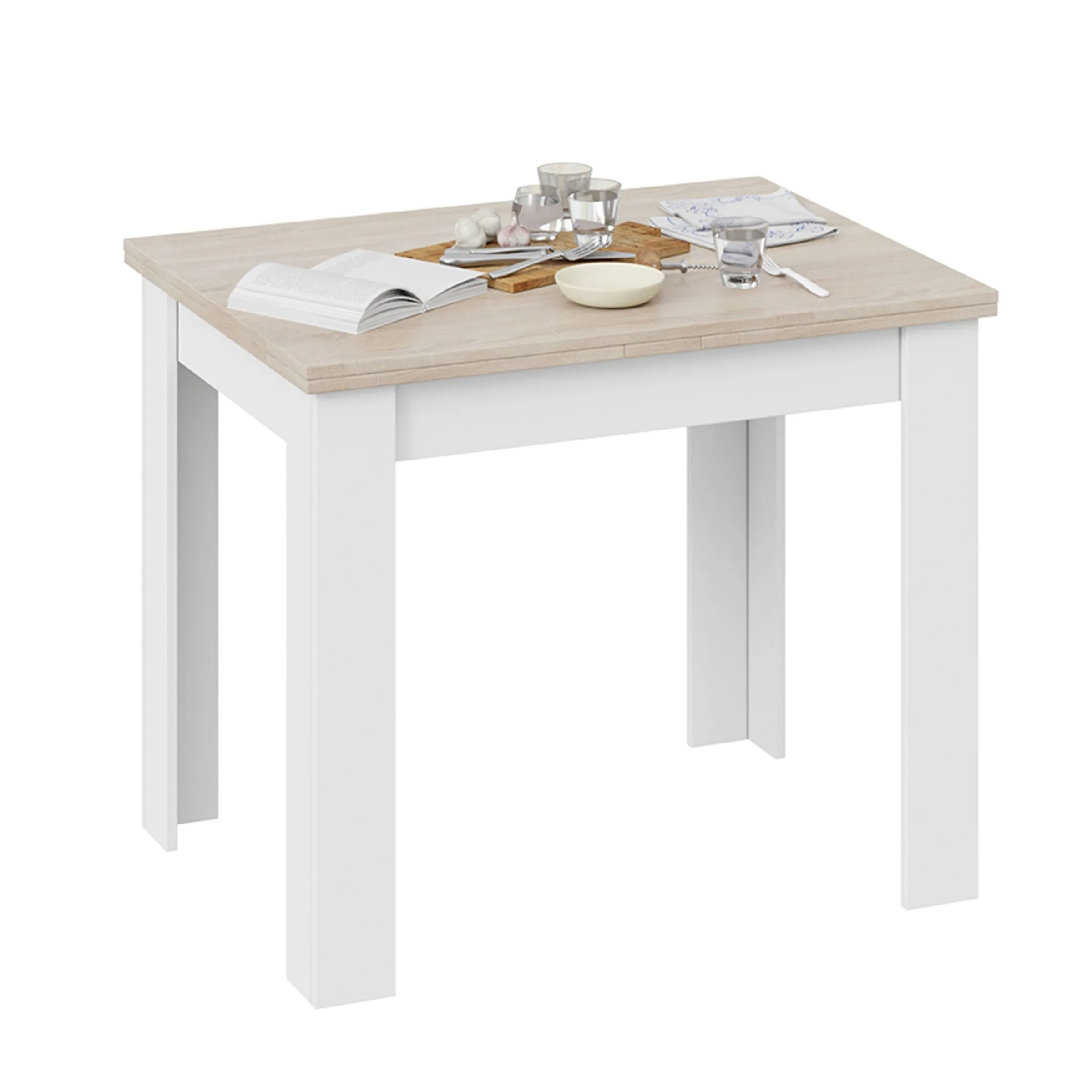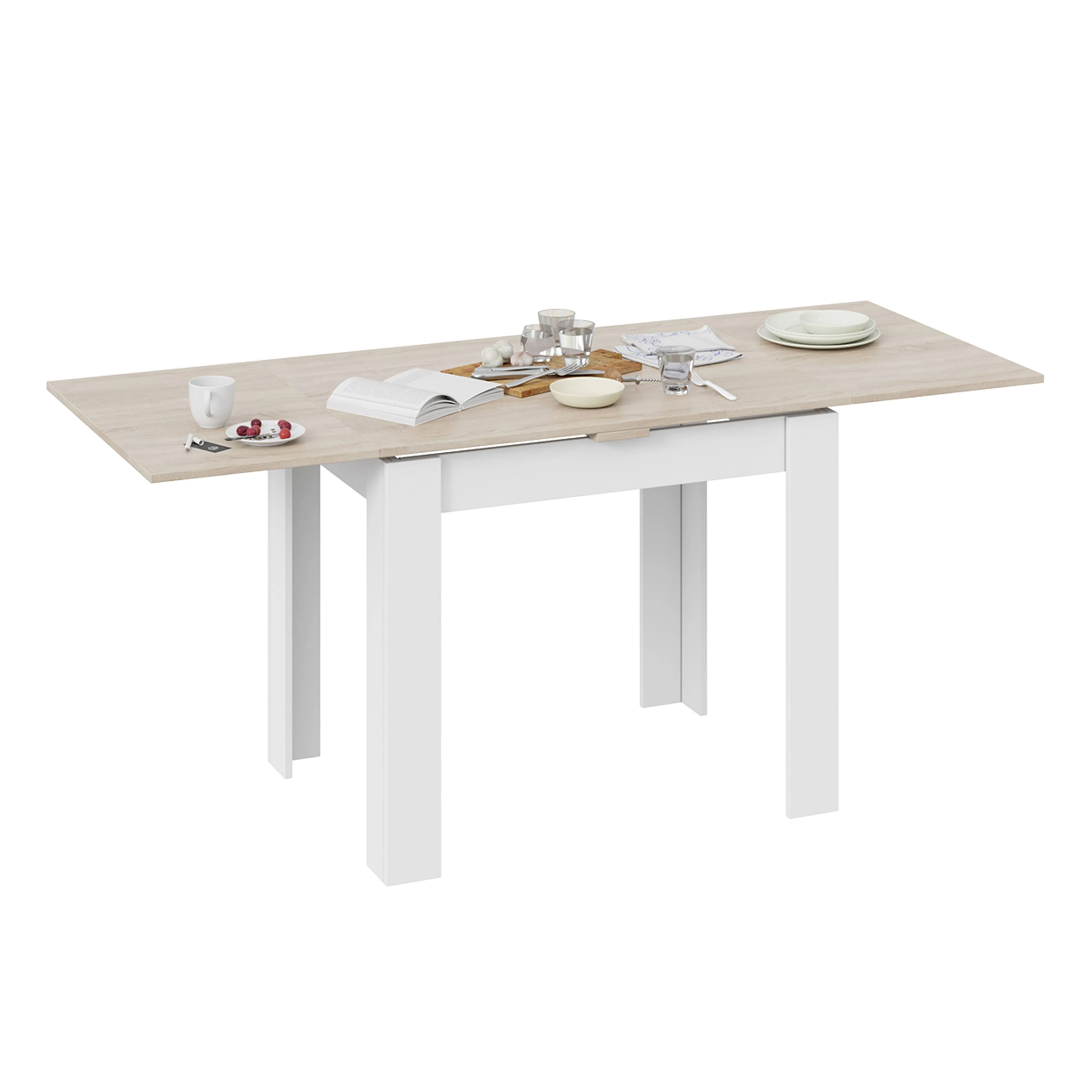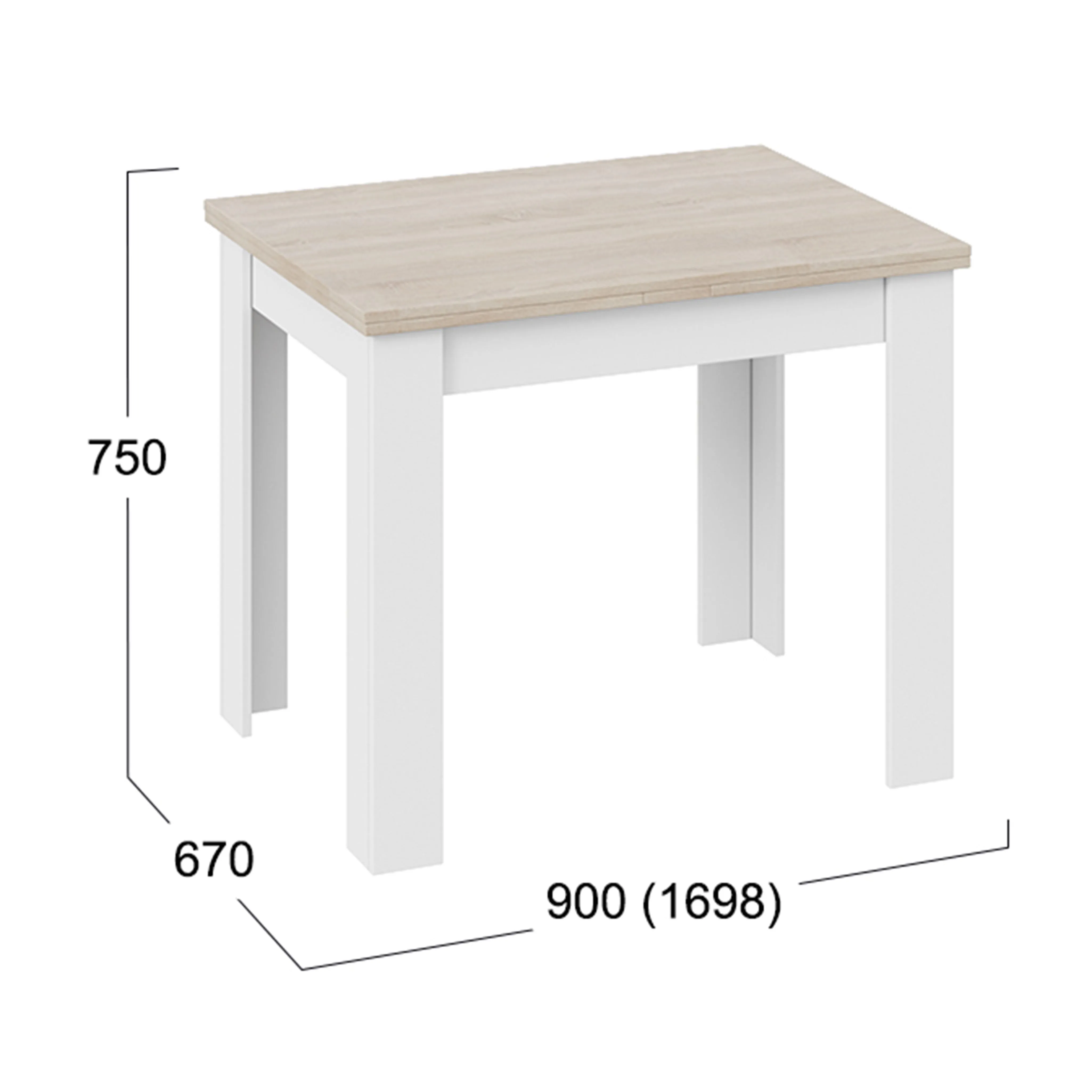 Стол раздвижной ПРОМО Тип 3, 900(1698)*670, дуб сонома светлый/белый