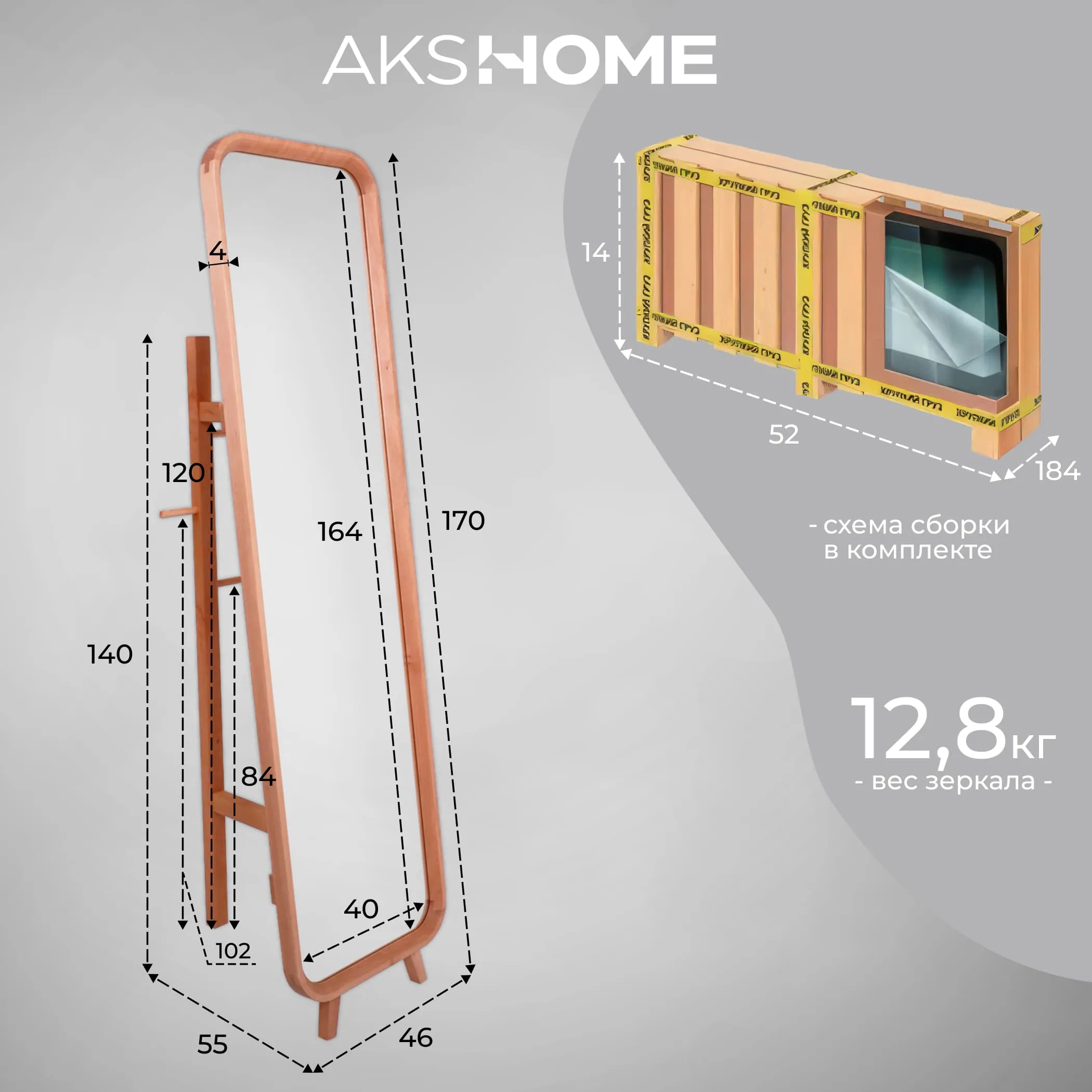 Зеркало напольное OLAND, натуральный, 46*169,5см
